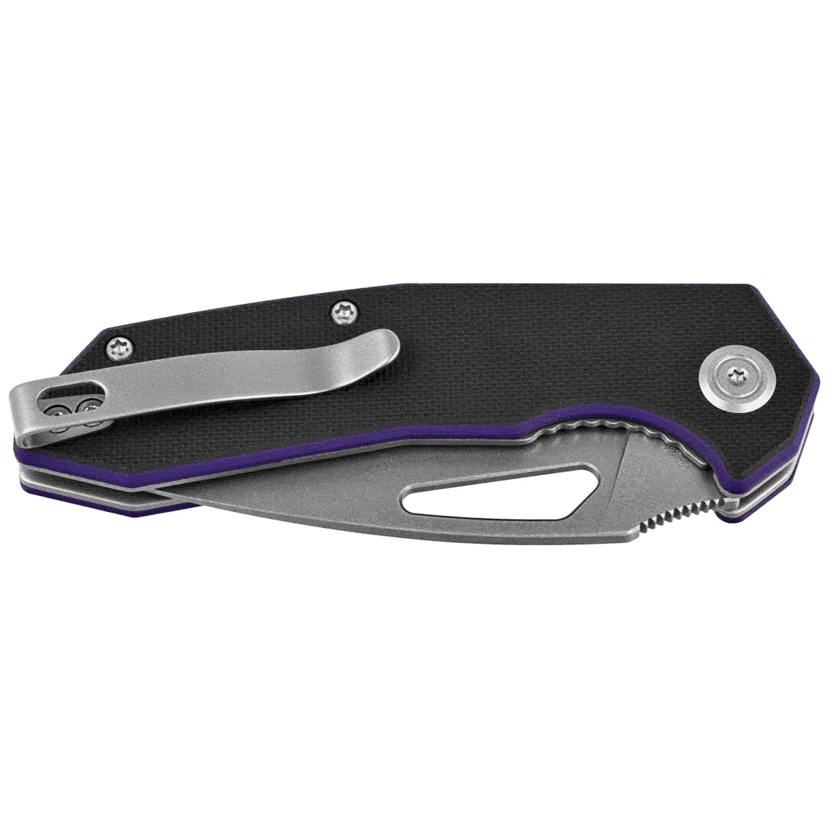 Coeus Black/Purple G10, Beadblasted wyrazisty folder EDC z szeroką głownią wykonaną ze stali nierdzewnej Sandvik 14C28N, zakończoną ostrym sztychem, który znajduje się dokładnie w linii środkowej noża, co zapewnia maksymalną skuteczność. Pełnowymiarową rękojeść z kompozytu G10 przystosowano do wielu stylów uchwytu. Idealny nóż do intensywnego użytkowania, wykonany z doskonałych materiałów przy zachowaniu niezwykle atrakcyjnej ceny. Bestseller!