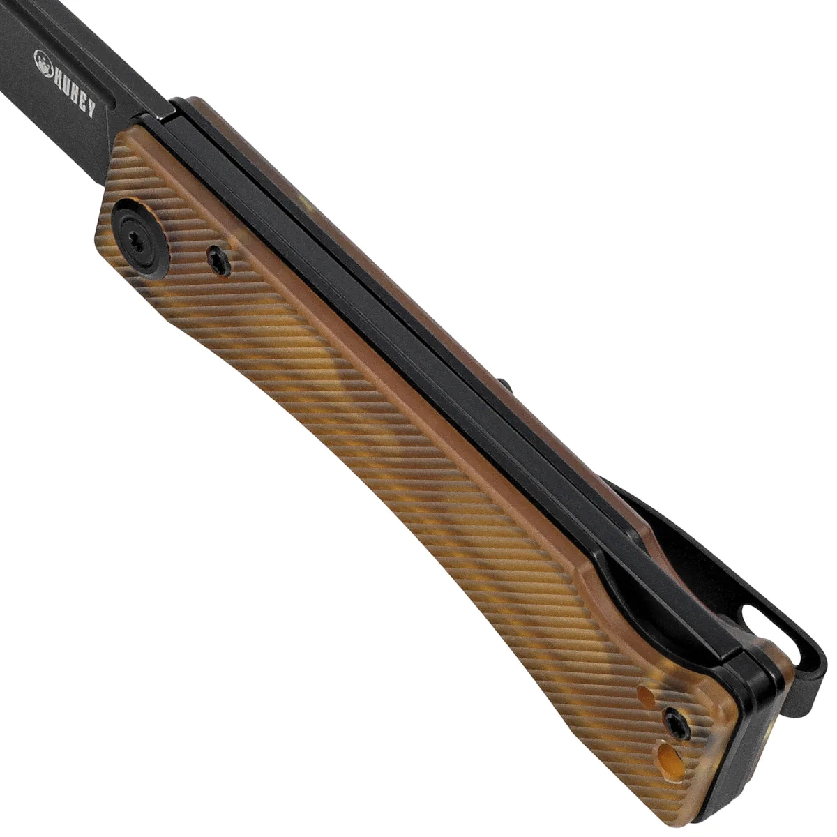 - Akino Yellow Ultem, Blackwashed kompaktowy folder EDC, projekt znanego designera Tiguassa. Użytkowa głownia ze stali Sandvik 14C28N. Prosta, wygodna rękojeść z kompozytu ULTEM. Jedna z najlepiej przetestowanych blokad na świecie, czyli lockback.