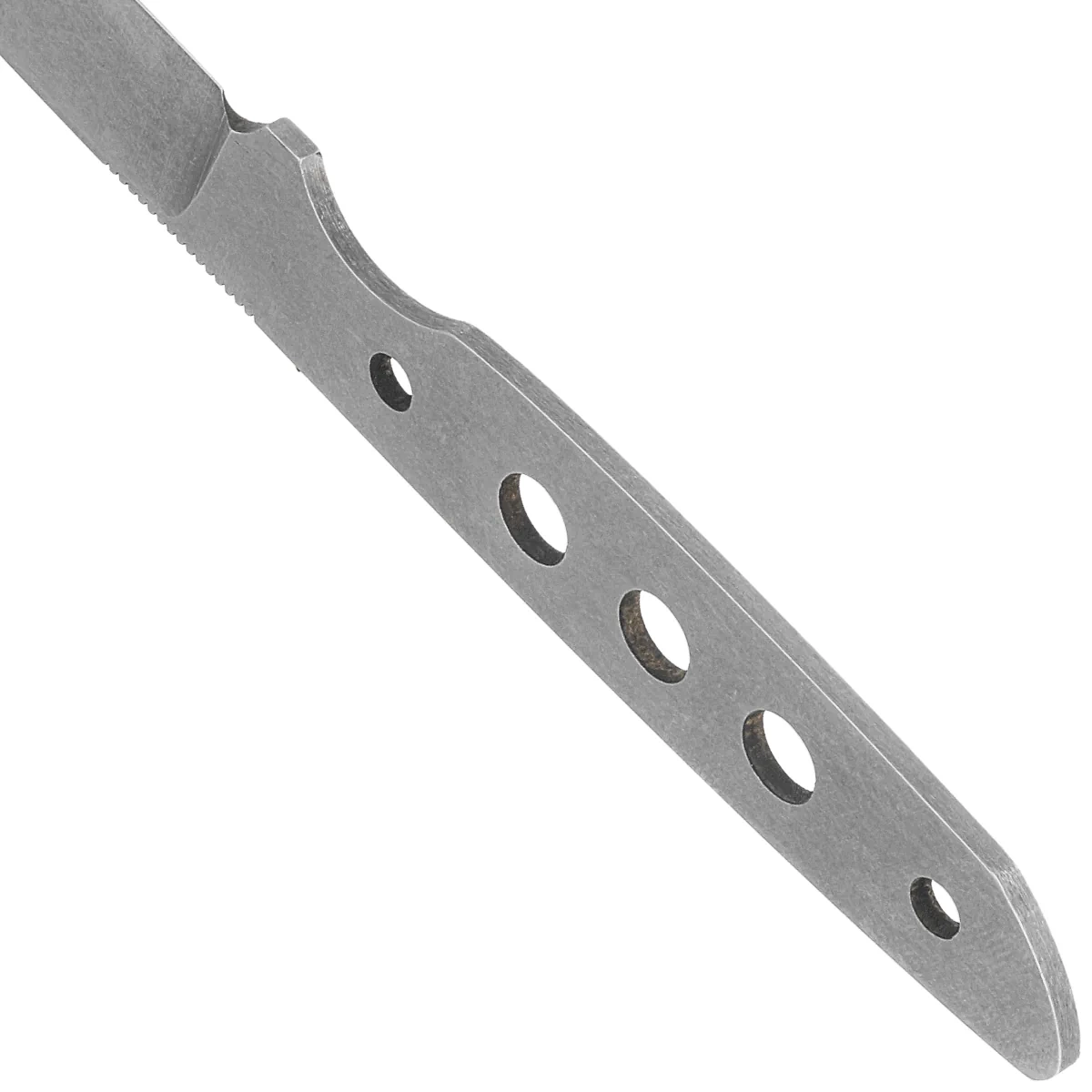 EHO Naked Stonewashed 1.4116S to wyjątkowe narzędzie zaprojektowane z myślą o użytkownikach ceniących funkcjonalność i elegancję. Monolityczna konstrukcja typu full tang zapewnia niezrównaną wytrzymałość podczas użytkowania. Głownia wykonana ze stali nierdzewnej 1.4116S, znanej z doskonałej odporności na korozję i łatwości ostrzenia. Rękojeść została zaprojektowana z serią precyzyjnie rozmieszczonych otworów, które nie tylko redukują wagę noża, ale także umożliwiają personalizację poprzez owinięcie jej paracordem lub innym materiałem, dostosowując uchwyt do indywidualnych potrzeb użytkownika. Dołączona pochwa z kydexu oferuje pewne i bezpieczne przechowywanie noża, a jej przemyślany design pozwala na różnorodne opcje montażu – zarówno na pasie, jak i na krawędzi kieszeni. Dzięki temu nóż EHO Naked Satin 1.4116S staje się niezastąpionym towarzyszem w codziennych wyzwaniach, łącząc w sobie nowoczesny design z praktycznymi rozwiązaniami.