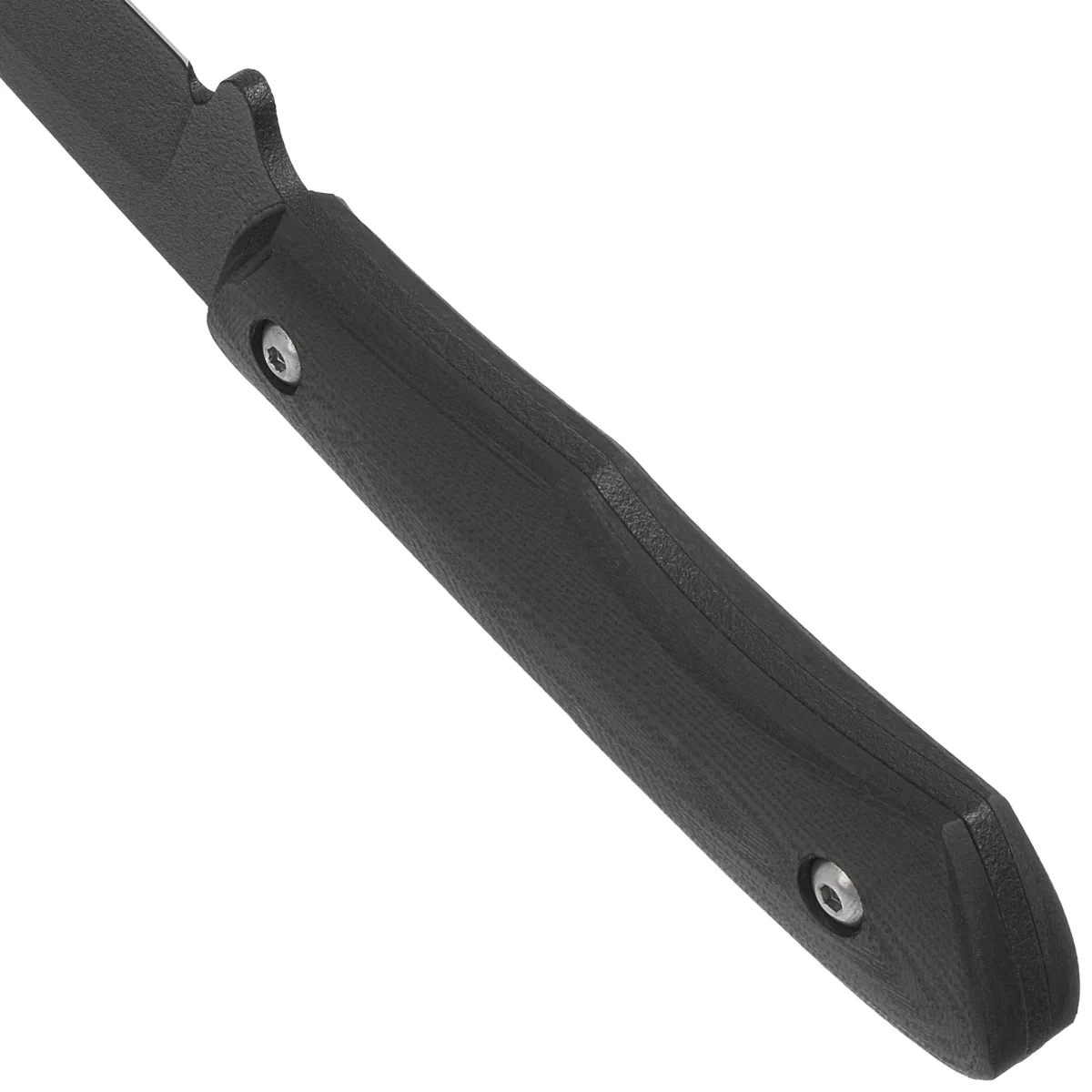 M10M Black G10, Black to precyzyjnie wykonany nóż outdoorowy, zaprojektowany z myślą o niezawodności w każdej sytuacji. Głownia ze stali 1.4116S, charakteryzuje się podwyższoną odpornością na korozję oraz doskonałą retencją krawędzi tnącej. Dzięki odpowiedniej obróbce cieplnej zachowuje optymalną twardość, gwarantując długie trzymanie ostrości. Rękojeść z kompozytu G10, znanego z wysokiej odporności na wilgoć, uderzenia i ekstremalne temperatury, zapewnia pewny chwyt w każdych warunkach. Ergonomiczne profilowanie zwiększa komfort użytkowania, eliminując zmęczenie dłoni. Konstrukcja full tang gwarantuje wysoką wytrzymałość, umożliwiając intensywną eksploatację. Solidność i kompaktowa budowa sprawiają, że jest to wszechstronne narzędzie, które sprosta każdemu wyzwaniu.