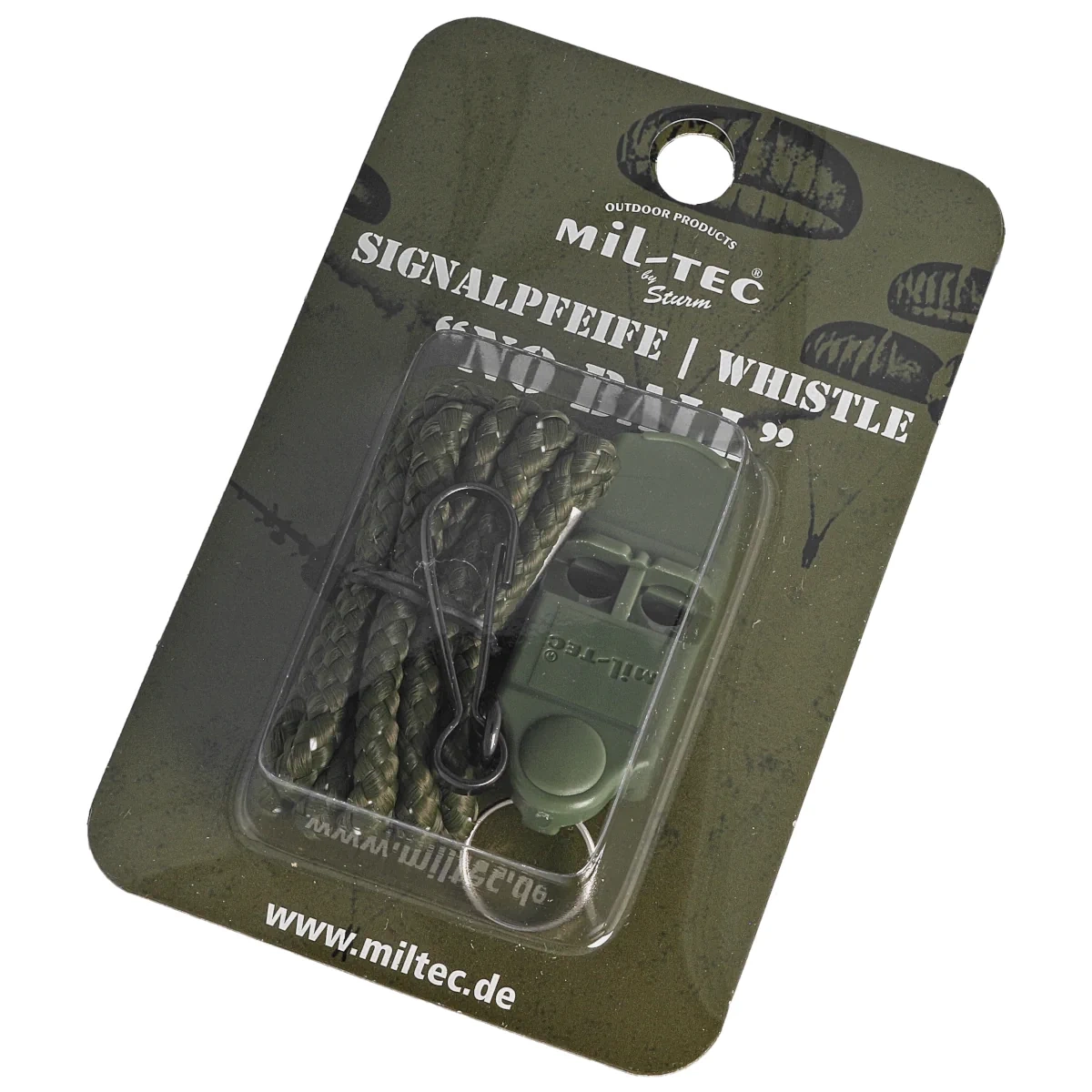 Gwizdek sygnalizacyjny Mil-Tec No Ball – bardzo głośny model wykonany z lekkiego i wytrzymałego tworzywa ABS. Zapewnia donośny sygnał alarmowy, który może być używany w sytuacjach awaryjnych oraz do koordynacji grupy osób.