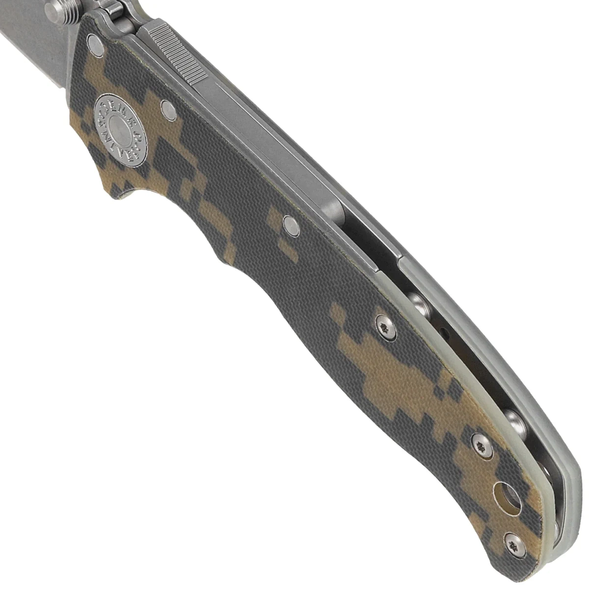 • AD20.5 Shark Foot Digi Camo G10, Stonewashed CPM S35VN solidny, mocny folder EDC zaprojektowany do ciężkiej pracy. Projekt długoletniego projektanta firmy Cold Steel, Andrew Demko. Jego blokada Shark-Lock™ jest uznawana za najmocniejszą na świecie!