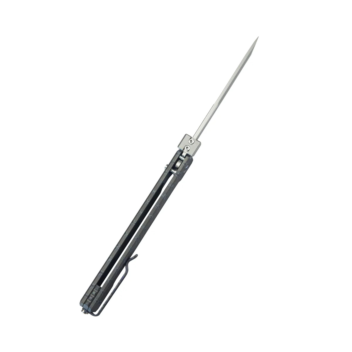 Prism Flame Titanium, Beadblasted to dyskretny folder codziennego użytku. Zaprojektowany przez Yuze Zhonga, łączy minimalistyczną estetykę z najwyższą jakością wykonania. Klinga o smukłym profilu została wykonana z szwedzkiej stali Sandvik 14C28N, hartowanej próżniowo i poddanej kriogenicznemu procesowi stabilizacji. Dzięki temu ostrze uzyskało wyjątkową odporność na ścieranie oraz długotrwałą retencję krawędzi tnącej. Rękojeść z tytanu o matowym, piaskowanym wykończeniu, zapewnia pewny chwyt niezależnie od sytuacji. Jej ergonomiczny kształt harmonijnie dopasowuje się do dłoni, umożliwiając pełną kontrolę nad ostrzem. Mechanizm blokady button lock działa płynnie, gwarantując szybkie i niezawodne blokowanie klingi. Prism to wyważone połączenie estetyki i funkcjonalności – niezawodne narzędzie, które zachwyca zarówno precyzją wykonania, jak i subtelną elegancją.