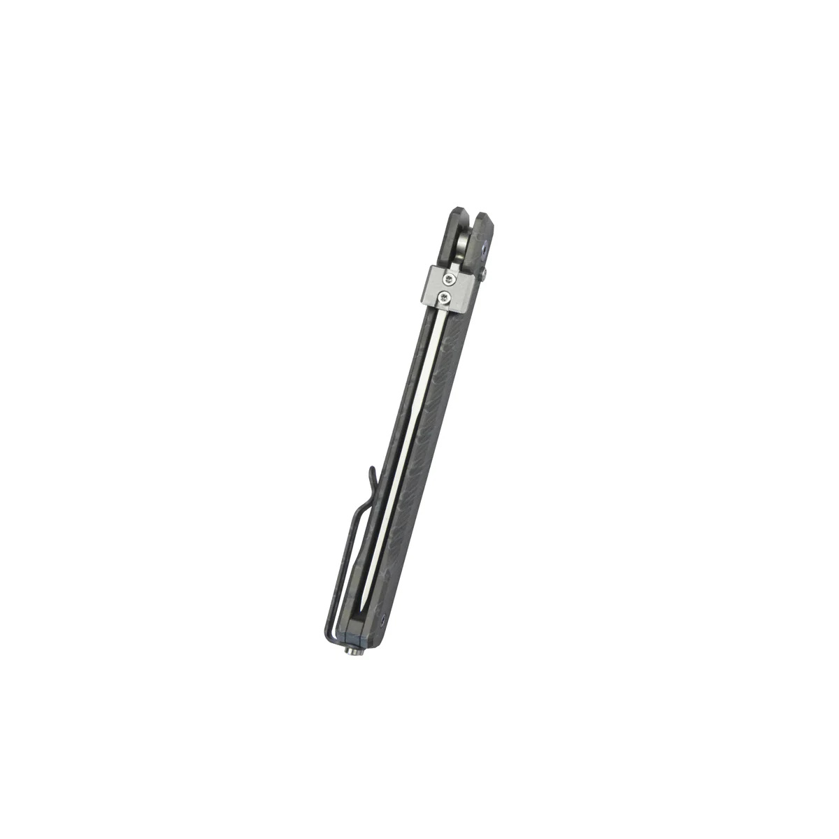 Głownia - smukła, typu Tanto Point, wykończona maskującą drobne rysy metodą Beadblasted polegającą na piaskowaniu z wykorzystaniem drobnych kuleczek szklanych lub ceramicznych. Grubość klingi w połączeniu z wysokim, płaskim szlifem daje doskonałą geometrię krawędzi tnącej oraz ekstremalną wydajność cięcia. Ceramiczne łożyska kulkowe odpowiadają za płynną i gładką pracę mechanizmu i wspomagają otwarcie ostrza za pomocą dysku na grzbiecie głowni. Mechanizm blokady to intuicyjny i pewny Button Lock.