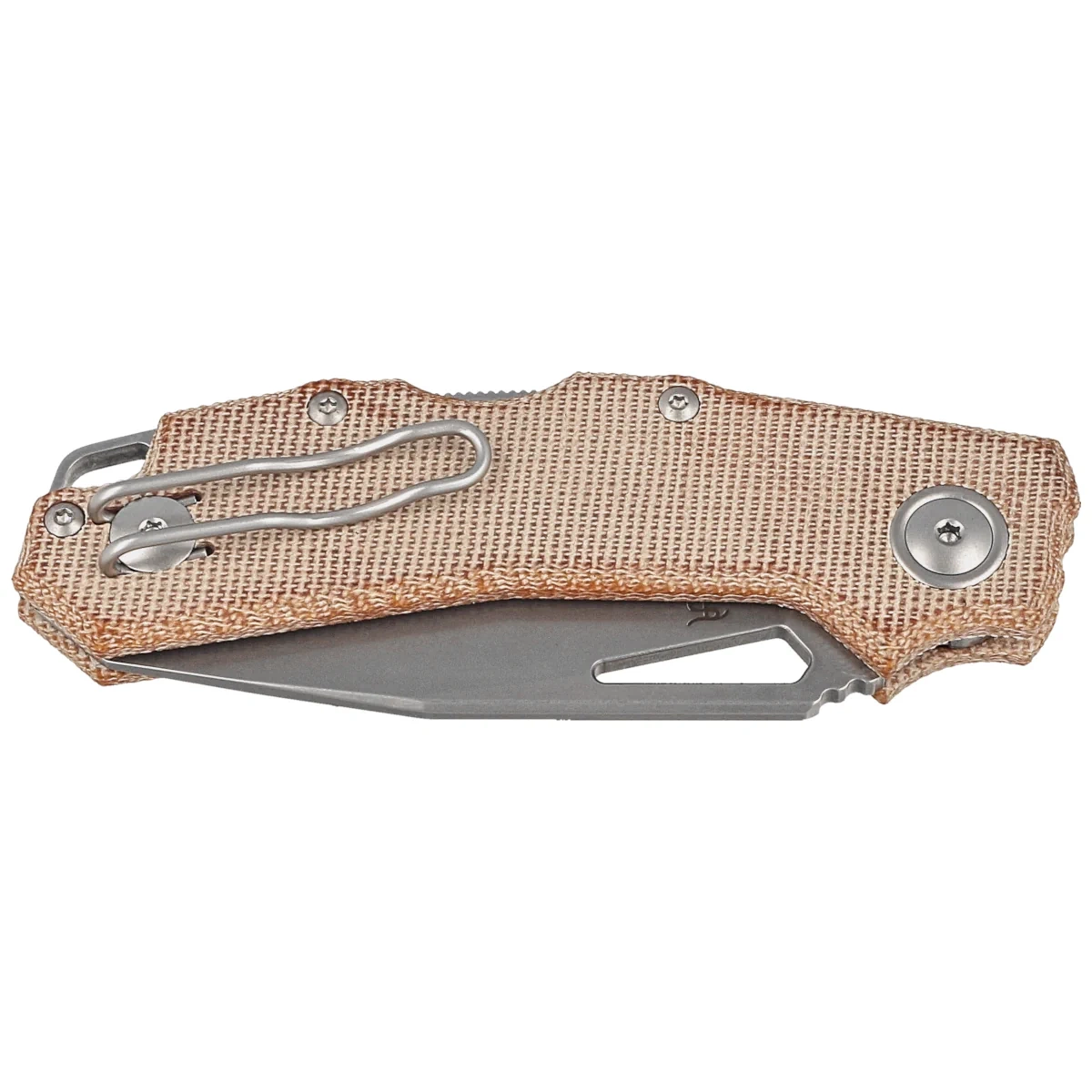 - Alfa Natural Canvas Micarta, Stonewashed mocny, podręczny folder zaprojektowany przez Simone Tonolliego. Głownia o profilu sheepsfoot z doskonałej stali CPM MagnaCut, rękojeść z kompozytu Micarta. Prosta i pewna blokada back lock. Doskonałe narzędzie!