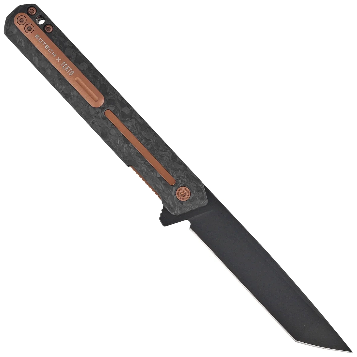 - F2 Bravo x Eotech Edition Black Forged Carbon Fiber, Bronze HW/Clip, Black. Tekto i EOTECH, lider w dziedzinie precyzyjnej optyki używanej przez amerykańskie wojsko i elitarne siły na całym świecie, łączą siły, aby zaprezentować limitowaną edycję noża F2