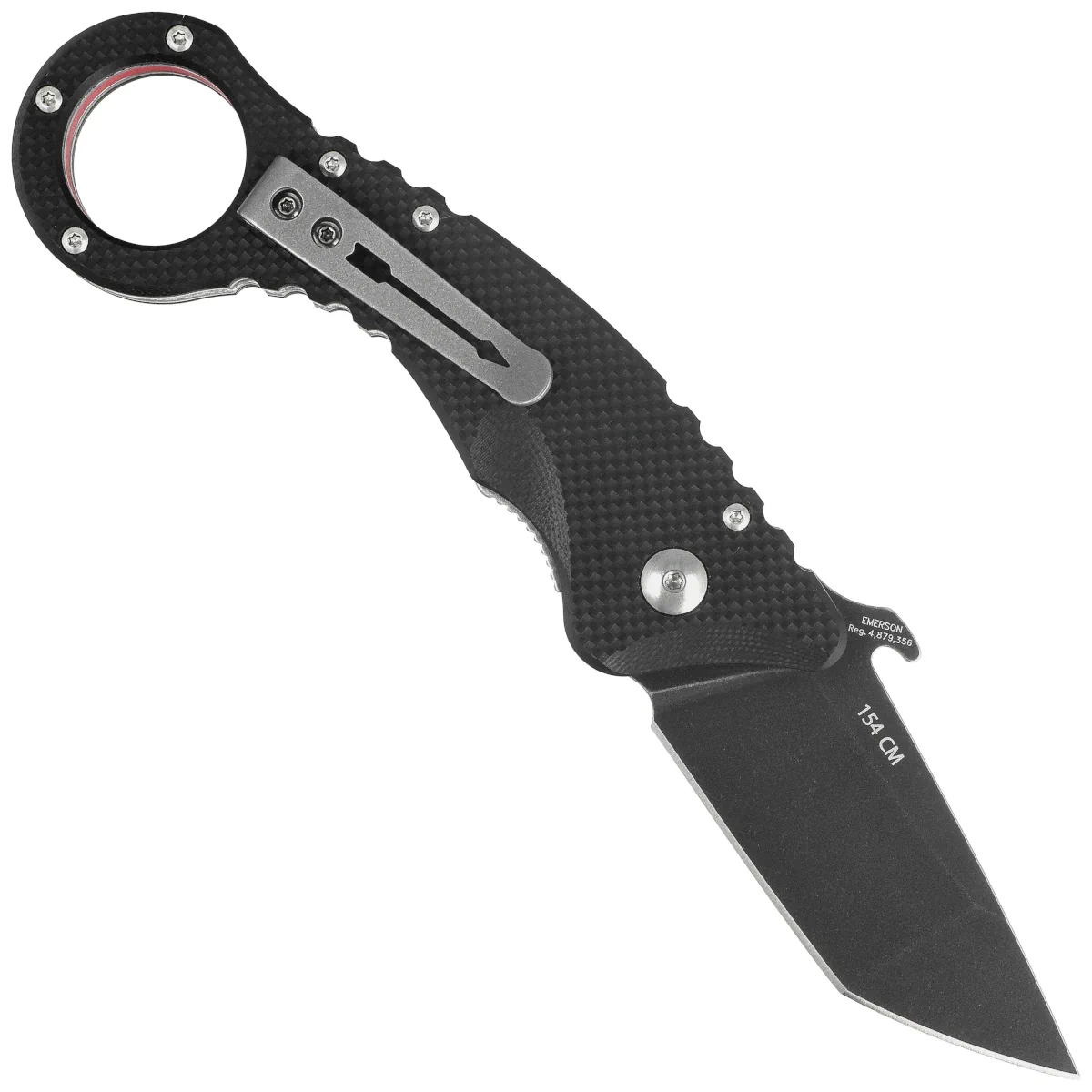 Ronin Shoto Black G10, Black TiN to wyrafinowany nóż składany typy karambit o taktycznym charakterze, zaprojektowany przez Tu Lama z Ronin Tactics. Głownię w stylu tanto wykonano z wysoce odpornej stali CPM 154CM, cenionej za doskonałą trwałość ostrza i wysoką odporność na korozję. Grubość krawędzi tnącej umożliwia zarówno precyzyjne cięcie, jak i przebijanie, co sprawia, że ten model idealnie sprawdza się podczas wymagających zadań zarówno w warunkach polowych, jak i miejskich. Rękojeść wykonana z kompozytu G10 o specjalnej fakturze zapewnia pewny i stabilny chwyt w każdych okolicznościach. Została zaprojektowana tak, aby doskonale leżała w dłoni, niezależnie od warunków użytkowania. Mechanizm otwierania Emerson Wave gwarantuje natychmiastową gotowość do działania — ostrze wysuwa się w ułamku sekundy podczas wyjmowania noża z kieszeni, co czyni go niezwykle skutecznym w sytuacjach awaryjnych.