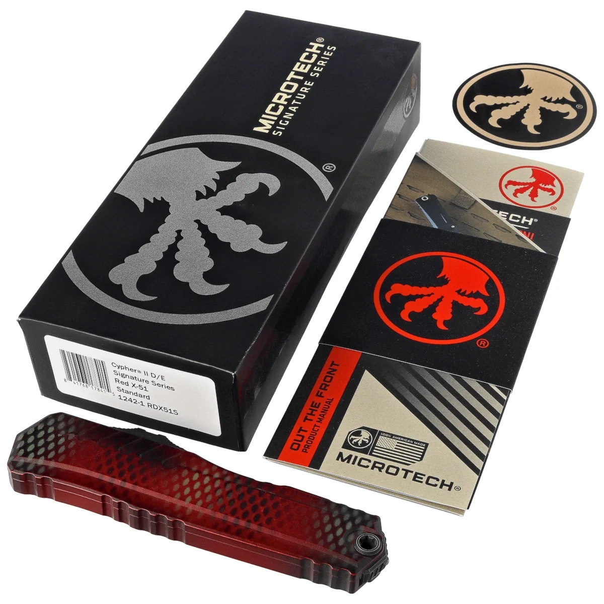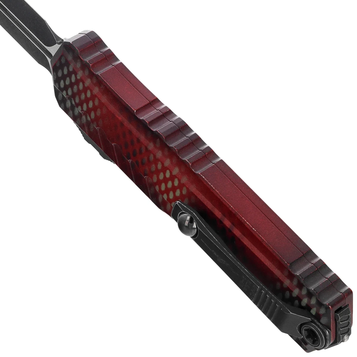 Nóż automatyczny OTF Microtech Cypher II D/E Signature Red X-51 Aluminium, Distressed Black M390MK by Deryk Munroe i Tony Marfione (1242-1RDX51S)
