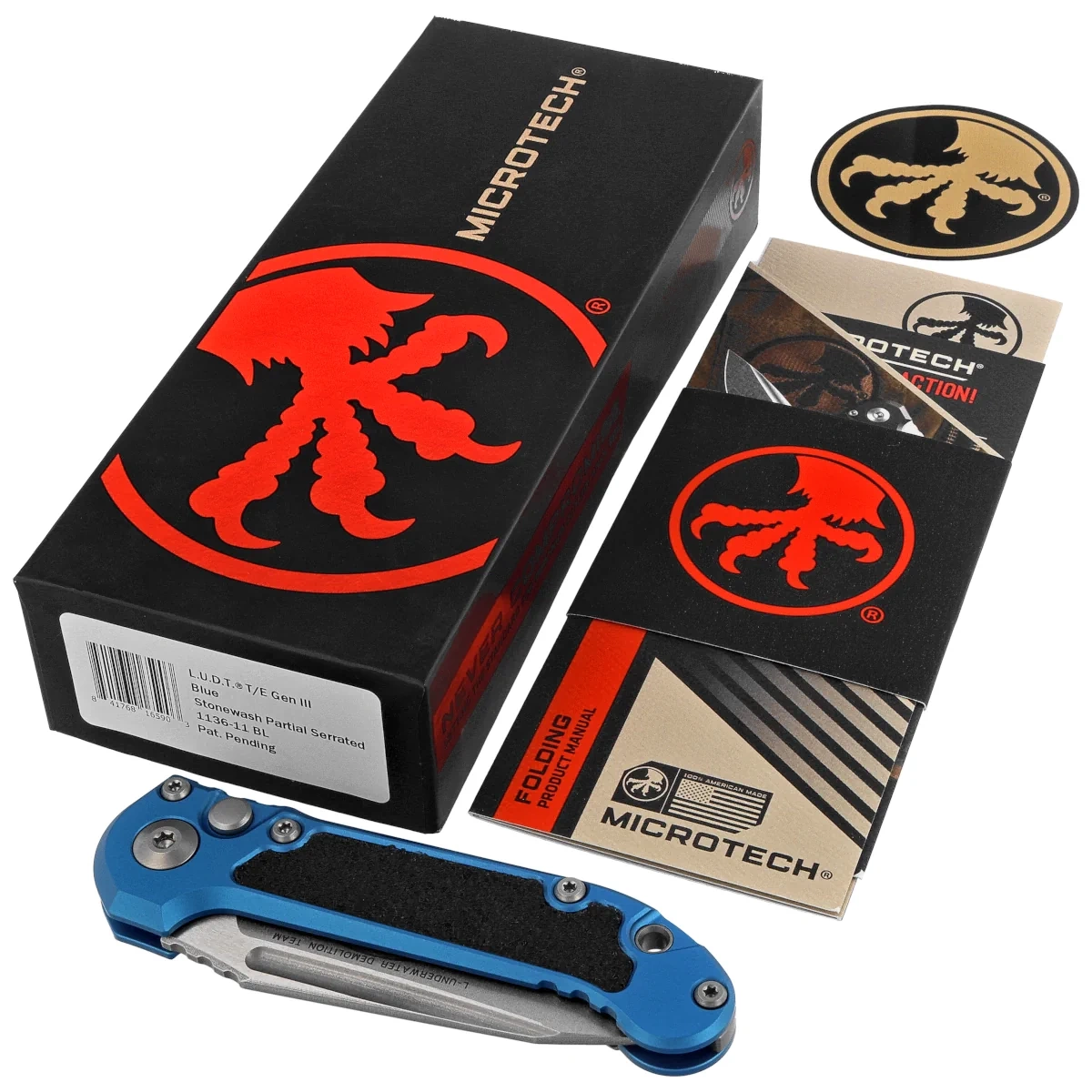 Nóż automatyczny Microtech LUDT Gen III T/E Blue Aluminium, Stonewashed P/S M390MK by Tony Marfione (1136-11BL)