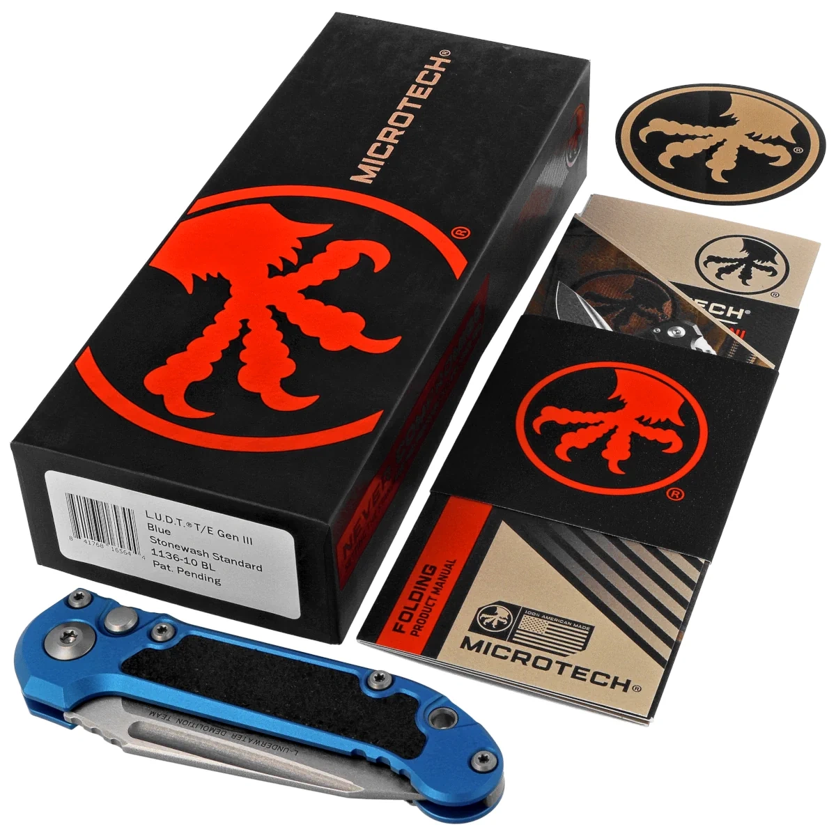 Nóż automatyczny Microtech LUDT Gen III T/E Blue Aluminium, Stonewashed M390MK by Tony Marfione (1136-10BL)