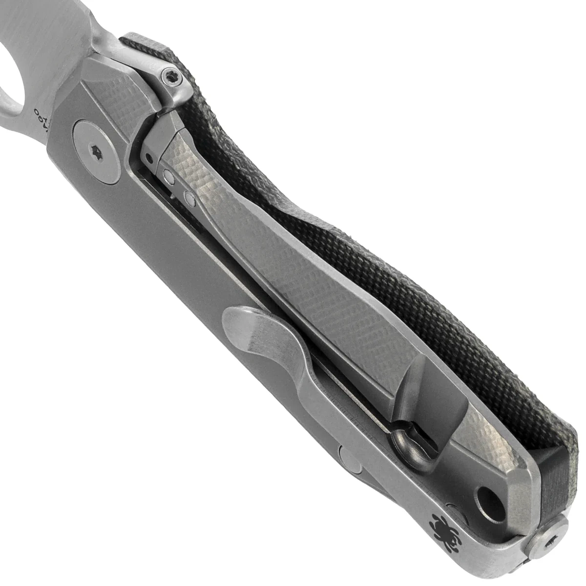 Rękojeść - harmonijne połączenie kompozytu Canvas Micarta i tytanu, które oferuje nie tylko kontrast wizualny, ale i realną wartość użytkową. Okładzina z zielonej Micarty wnosi lekkość, teksturę i naturalny wygląd, natomiast tytanowa strona – zintegrowana z blokadą R.I.L. – odpowiada za sztywność i bezpieczeństwo mechaniczne. Projekt rękojeści wspiera wygodne operowanie nożem w codziennych zadaniach, pomimo jego niewielkich wymiarów. Delikatnie zaokrąglone krawędzie, ergonomiczny kształt oraz otwarta konstrukcja ułatwiają zarówno chwyt, jak i czyszczenie. Wire clip w pozycji tip-up, przeznaczony dla prawo ręcznych użytkowników, zapewnia dyskretne i pewne mocowanie. To miniaturowe narzędzie o pełnowymiarowej precyzji, stworzone z myślą o najbardziej wymagających kolekcjonerach i użytkownikach EDC.