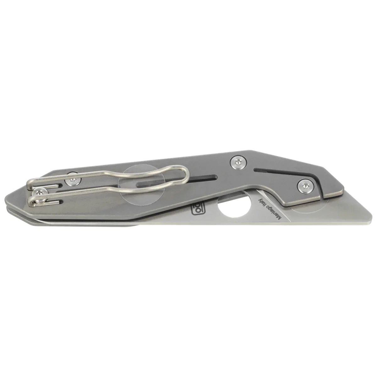 Rękojeść - z litego tytanu, co zapewnia wyjątkową sztywność przy niskiej masie i wysokiej odporności na korozję. Frezowane krawędzie, delikatne podpory pod palce oraz ergonomiczna linia uchwytu sprawiają, że nóż pewnie leży w dłoni mimo kompaktowych wymiarów. Choile oraz subtelne przetłoczenia poprawiają kontrolę i redukują ryzyko przypadkowego zamknięcia ostrza. Wbudowany mechanizm Ball Joint Non-Locking, oparty na podwójnym zatrzasku kulkowym, oferuje unikalne wrażenia z użytkowania – zachowując płynność pracy i spełniając wymogi prawne w krajach zakazujących noży z blokadą. Całość uzupełnia obustronny wire clip typu tip-up, który zapewnia dyskretne przenoszenie i łatwy dostęp. Otwarta konstrukcja nie tylko podkreśla techniczny charakter modelu, ale również ułatwia konserwację. To nóż EDC stworzony z myślą o użytkownikach ceniących inżynieryjne podejście, estetykę i subtelną funkcjonalność.