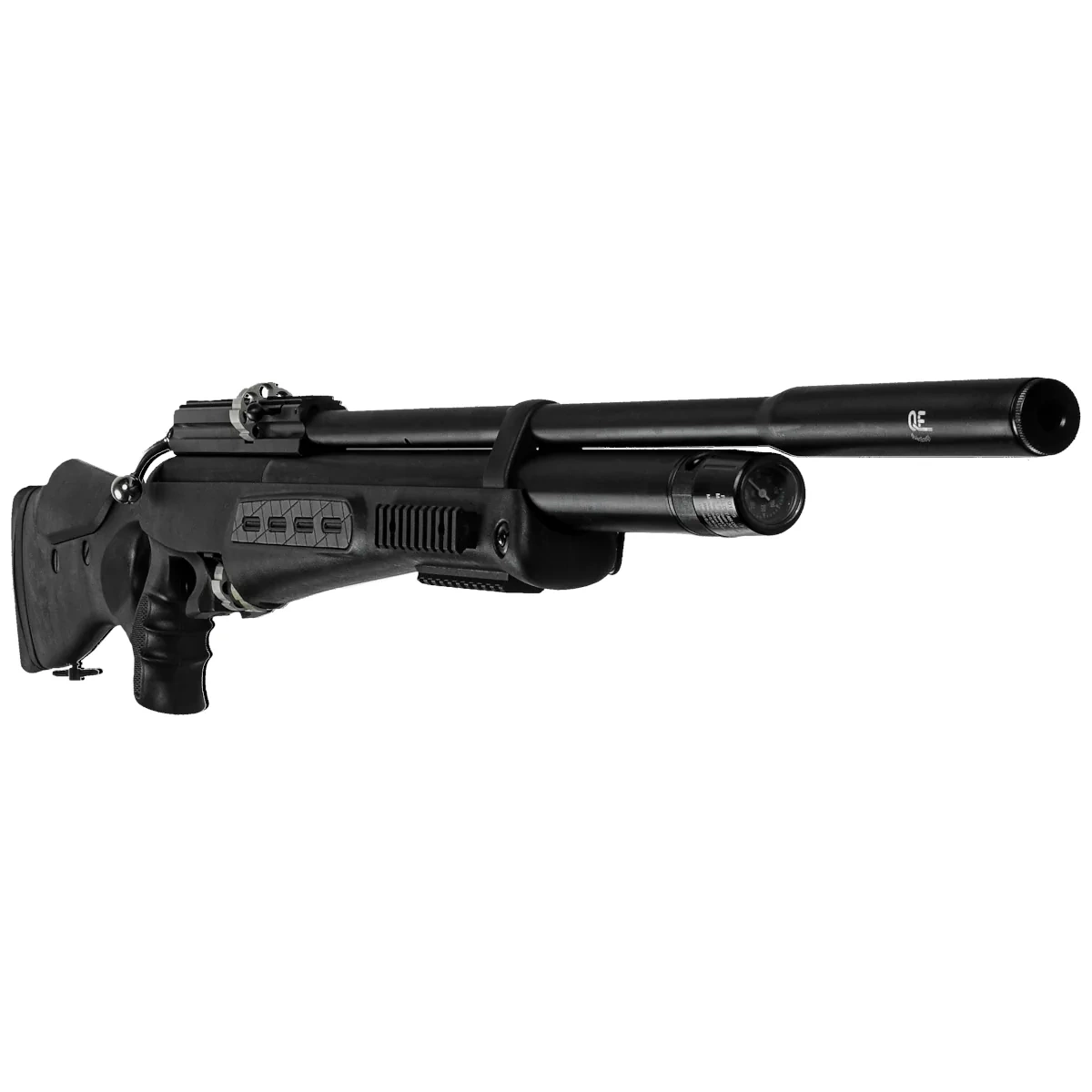 Zasilanie - wymienny zbiornik sprężonego powietrza o pojemności 255 cc. W pełni naładowany pozwala na oddanie 17-19 efektywnych strzałów w zależności od kalibru wiatrówki (dane dla wersji FAC). Wbudowany manometr pozwala kontrolować ciśnienie znajdujące się w zbiorniku, a tym samym stopnień jego naładowania. Obrotowy pierścień chroni wlot ładowania przed uszkodzeniem. Po opróżnieniu sprężonego powietrza, pusty zbiornik może zostać zastąpiony nowym napełnionym (opcja). Stanowi to doskonałe rozwiązanie dla osób nie zamierzających zabierać pompki PCP czy butli na strzelnicę.