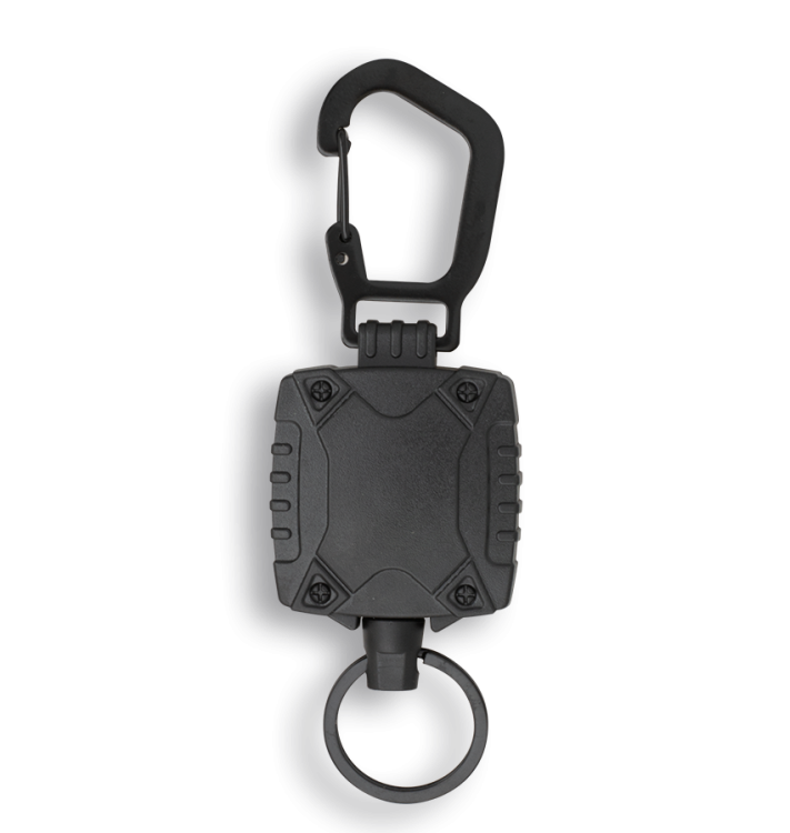 Korpus retraktora wykonany z tworzywa ABS charakteryzuje się wysoką odpornością na uderzenia oraz niewielką wagą, co ułatwia jego codzienne noszenie i użytkowanie w terenie. Ergonomiczny kształt umożliwia łatwe operowanie jedną ręką, a gładka powierzchnia nie chłonie zabrudzeń i jest łatwa do wyczyszczenia. Zwijana linka o długości 75 cm działa płynnie dzięki mechanizmowi sprężynowemu, który automatycznie przyciąga przewód po jego wysunięciu. Metalowy karabińczyk oraz plastikowy klips zapewniają wszechstronne opcje montażu, dostosowane do różnych konfiguracji sprzętu. Model 16246-NE to niezawodne akcesorium EDC, które zapewnia kontrolę nad najważniejszymi narzędziami, bez względu na warunki.