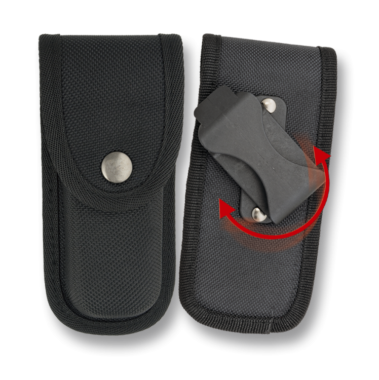 Etui zostało wyposażone w obrotowy uchwyt na pasek, który umożliwia mocowanie do pasa biodrowego, plecaka lub panelu MOLLE, zapewniając stabilność i wygodę noszenia. Zapięcie na zatrzask pozwala na szybkie otwieranie i bezpieczne zamknięcie, chroniąc zawartość przed przypadkowym wypadnięciem. Wewnętrzna przestrzeń pomieści większość standardowych folderów, multitooli oraz latarek taktycznych, oferując bezpieczne przechowywanie i transport w warunkach terenowych lub miejskich. Dzięki czarnemu, niskoprofilowemu wykończeniu, model 34080 dyskretnie integruje się z odzieżą codzienną i wyposażeniem outdoorowym. To solidny wybór dla osób, które oczekują prostoty, funkcjonalności i niezawodności w codziennym użytkowaniu sprzętu EDC – niezależnie od środowiska działania.