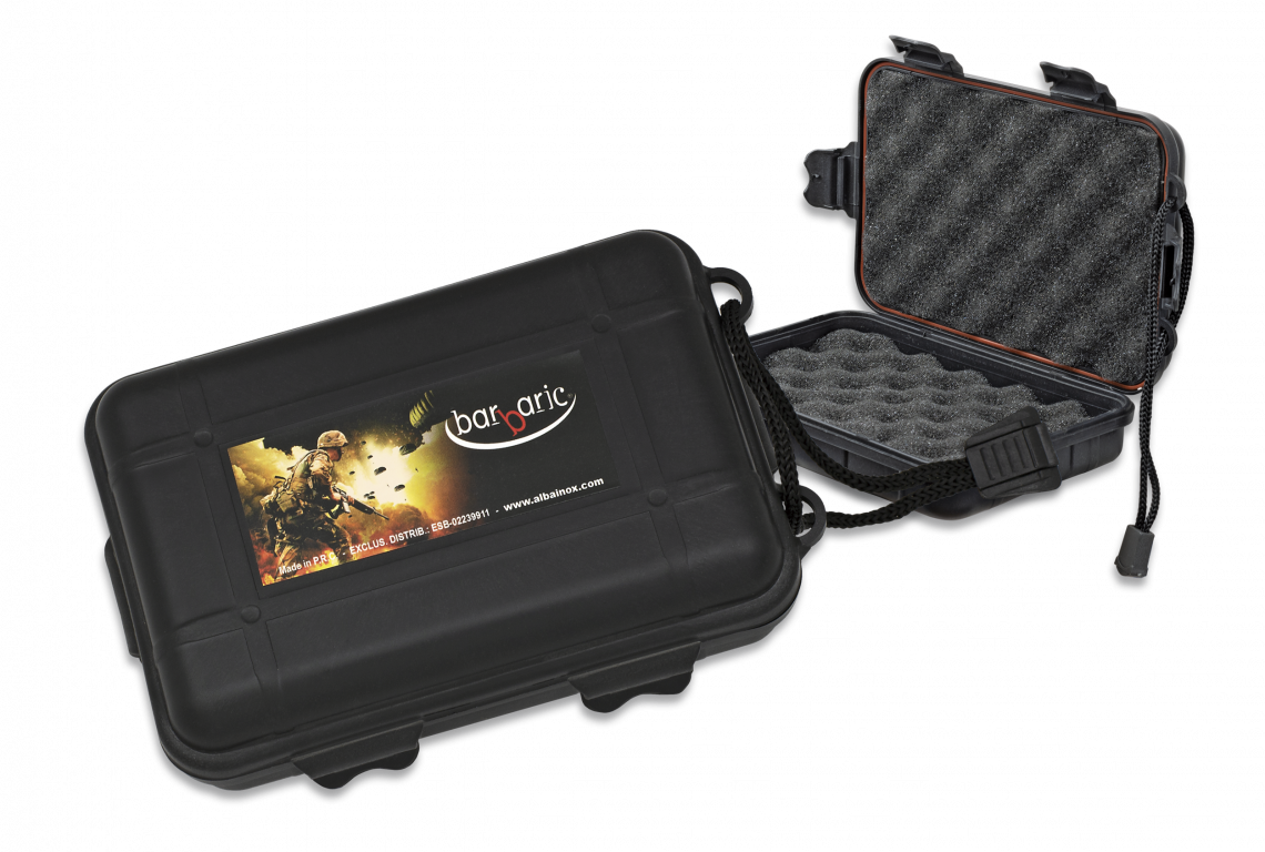 - Skrzynka survivalowa 120×80×40 mm, Black ABS (33922) – kompaktowe etui EDC od Barbaric z wytrzymałego ABS, odporne na uderzenia i wilgoć. Zamknięcie zatrzaskowe, niska masa i mobilność dla outdoorowych akcesoriów.