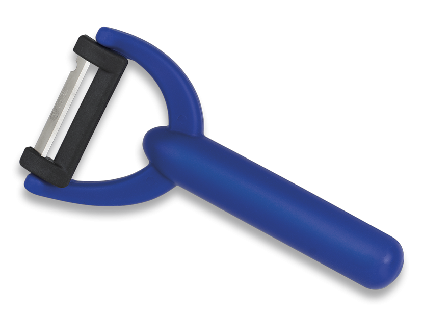 • Neola Horizontal Blue ABS/Grey Rubber (21221-AZ) – poręczna obieraczka z ostrzem poziomym do warzyw i owoców. Ergonomiczna rękojeść z tworzywa ABS z gumową powłoką zapewnia wygodę i bezpieczeństwo pracy.