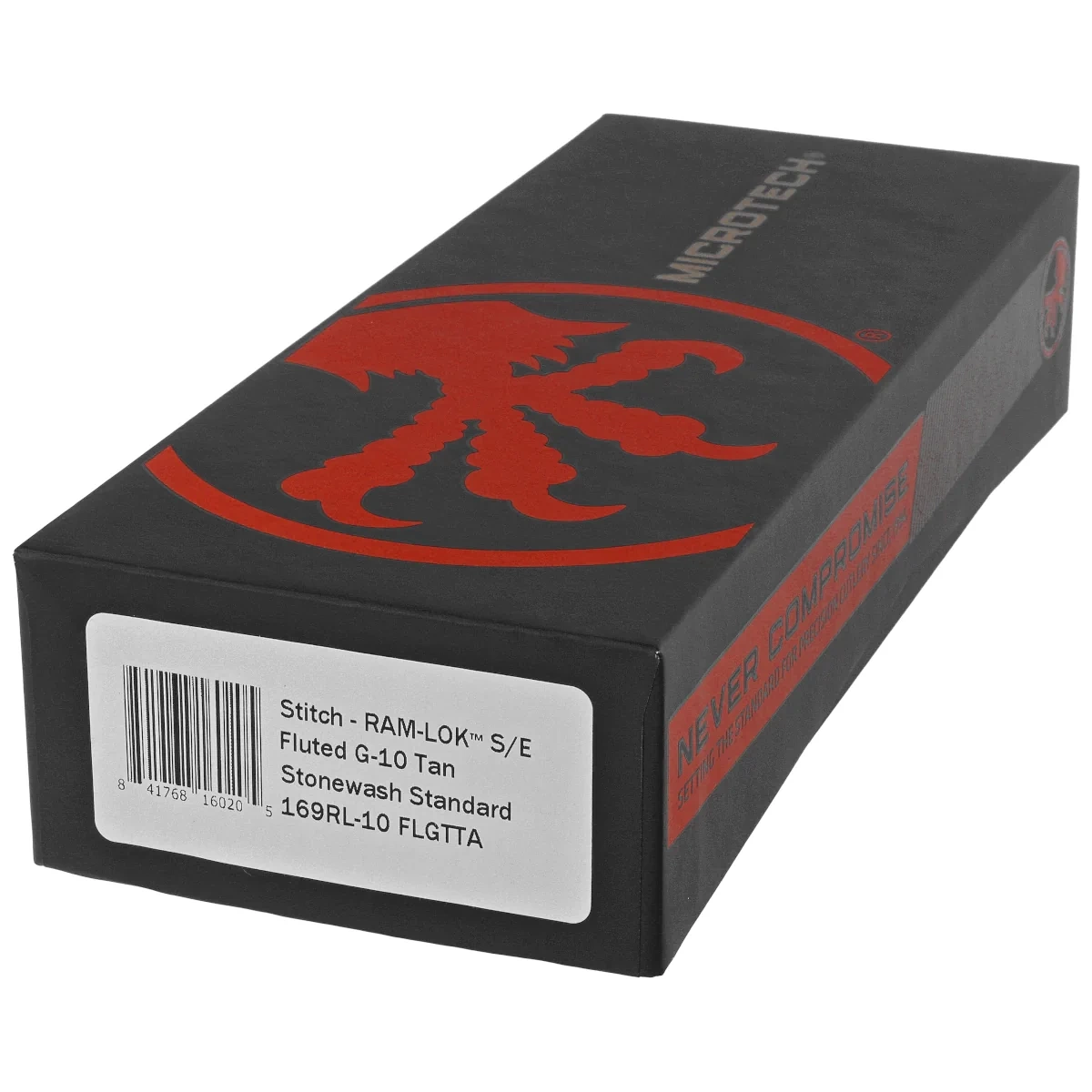 - Stitch Ram-Lok S/E Tan Fluted G10, Stonewashed manualna wersja popularnego projektu Sebastijana Berenjiego z Borka Blades i firmy Microtech. Szerokie ostrze w kształcie harpuna, doskonałe materiały i legendarna jakość wykonania firmy Microtech Knives