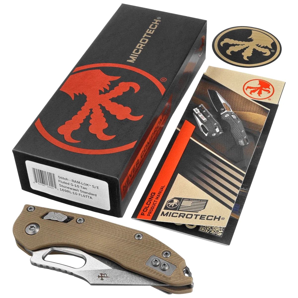 Nóż składany Microtech Stitch Ram-Lok S/E Tan Fluted G10, Stonewashed M390MK by Borka Blades and Tony Marfione (169RL-10FLGTTA)