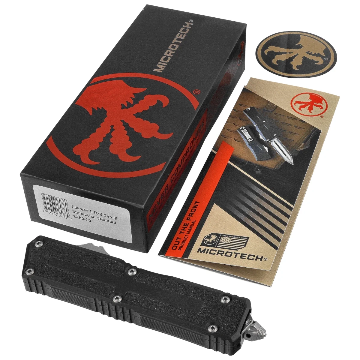 Nóż automatyczny OTF Microtech Scarab II Gen III D/E Black Aluminium, Stonewashed M390MK by Tony Marfione (1280-10)