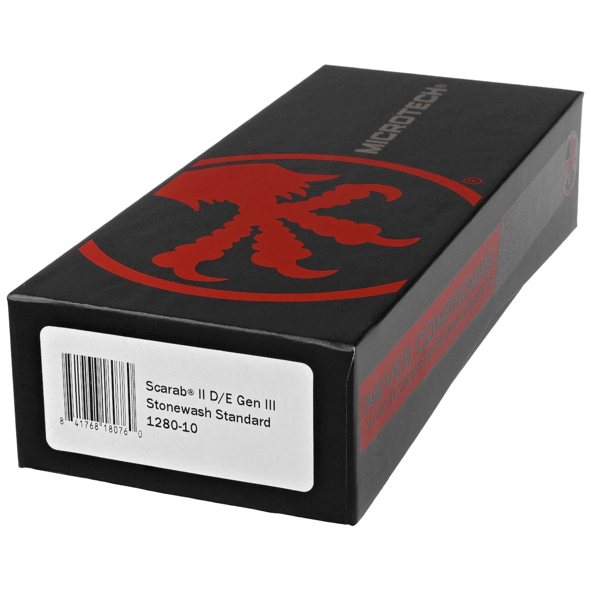 Scarab II Gen III D/E Black Aluminium/3M, Stonewashed to szczyt doskonałości w dziedzinie automatycznych noży taktycznych, czerpiący inspirację z oryginalnego projektu Microtech Ultratech. Zbudowany, aby wytrzymać najtrudniejsze warunki, nowy Scarab II jest najlepszym wyborem do intensywnego użytkowania. Zachowując cechy stylistyczne swojego poprzednika, wyznacza nowy standard dla technologii OTF (Out The Front).