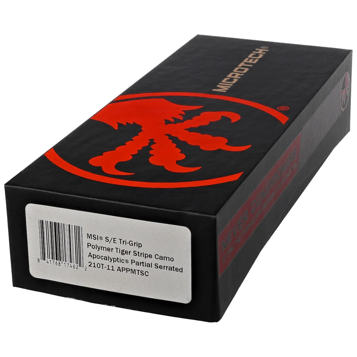 Nóż składany Microtech MSI S/E Ram-Lok Tiger Stripe Camo Tri-Grip Polymer, Apocalyptic P/S M390MK by Tony Marfione (210T-11APPMTSC)