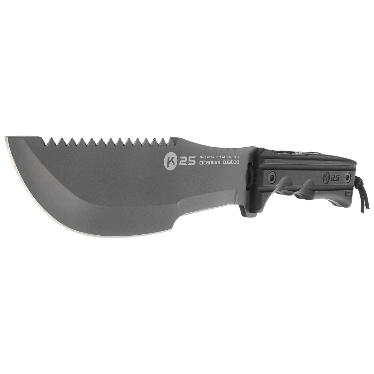 Rękojeść - z kompozytu SFL, dopracowana pod kątem ergonomii – profilowanie i podcięcia na palce zapewniają stabilność chwytu w każdych warunkach. Materiał charakteryzuje się odpornością na wilgoć, zmienne temperatury i uszkodzenia mechaniczne, co przekłada się na trwałość użytkową w terenie. Teksturowana powierzchnia poprawia przyczepność, a otwór na linkę pozwala na zabezpieczenie lub indywidualne dopasowanie noża do potrzeb użytkownika. Solidne wymiary w połączeniu z pochwą z nylonu czynią z modelu 32694 idealne narzędzie na wyprawę w teren – gotowe do użycia, gdy liczy się czas i niezawodność.