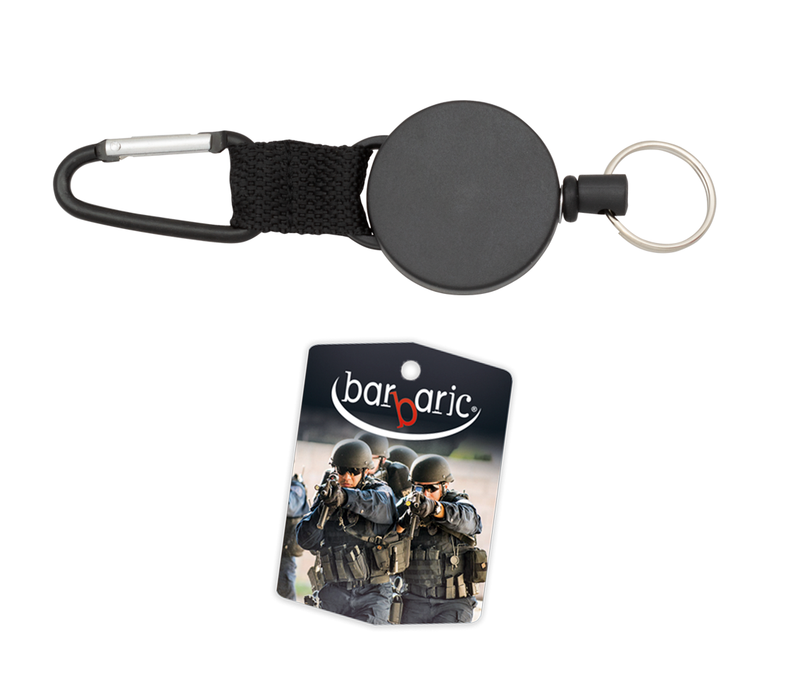 • Retraktor Barbaric Nylon/PVC z karabińczykiem 70cm (09920) – kompaktowe akcesorium EDC z rozwijaną linką długości 70 cm, wytrzymałą obudową z PVC i karabińczykiem na nylonowej taśmie. Idealne do organizacji wyposażenia w terenie i na co dzień.
