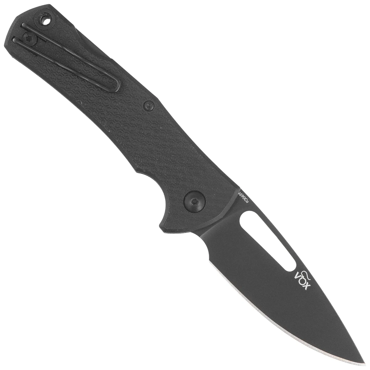 - Lov Black FRN, Black Top Shield, lekki nóż składany zaprojektowany przez znanego duńskiego knifemakera - Jespera Voxnæsa. Głownia ze stali nierdzewnej Böhler N690, rękojeść z lekkiego tworzywa FRN (Fiberglass Reinforced Nylon).