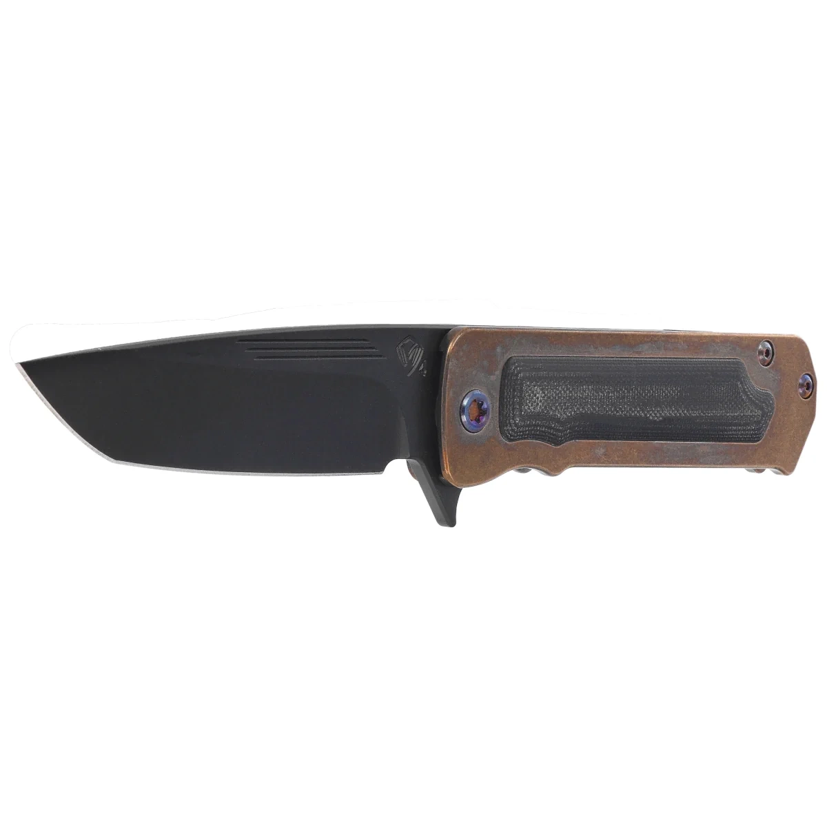 Rękojeść - połączenie tytanu oraz wkładek z kompozytu G10, co zapewnia zarówno wysoką odporność mechaniczną, jak i poprawioną przyczepność w dłoni. Faktura G10 poprawia kontrolę nad narzędziem w trudnych warunkach, a jego niska masa wpływa korzystnie na balans całej konstrukcji. Całość została zespolona śrubami barwionymi płomieniowo, które harmonizują z tytanowym klipsem. Klips typu deep carry pozwala na dyskretne i pewne przenoszenie noża. Rękojeść została zaprojektowana z myślą o użytkownikach oczekujących maksymalnej funkcjonalności i estetyki na najwyższym poziomie.