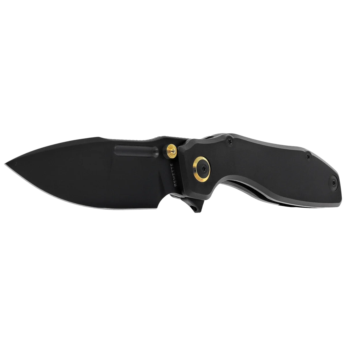 Głownia - modyfikowany profil drop point z zaokrąglonym brzuścem i wyraźnym czubkiem zapewnia doskonałą precyzję cięcia oraz trwałość podczas intensywnego użytkowania. Ostrze wykonano z stali M390, znanej z ekstremalnej odporności na zużycie i zachowania ostrości przez długi czas. Szlif compound łączy cienką krawędź roboczą z wklęslym szlifem przy rękojesci, z mocniejszym przekrojem plaskiego szlifu przy czubku. Czarna powłoka DLC podkreśla techniczny styl całości. Głownia porusza się na łożyskach ceramicznych, gwarantując wyjątkową płynność otwierania. Wydłużone frezowanie na grzbiecie (jimping) oraz ergonomiczne zagłębienie na kciuk poprawiają kontrolę nad ostrzem. Użytkownik ma do dyspozycji trzy sposoby otwierania – flipper, front flipper oraz wycięcie w głowni.