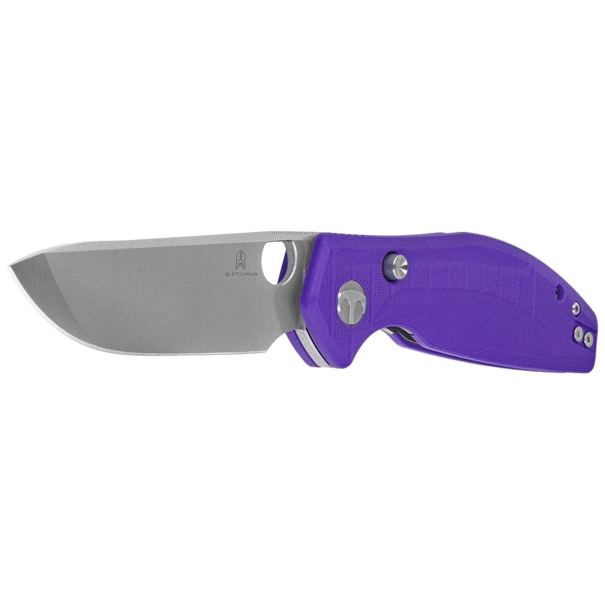 Angry Owl Purple G10, Satin/Stonewashed to efekt współpracy z amerykańskim projektantem Keanu Alfaro, znanym z łączenia minimalistycznej estetyki z funkcjonalnością użytkową. Jego filozofia opiera się na prostocie, ergonomii i dopracowaniu detali, które ewoluują na bazie opinii społeczności. Angry Owl został zaprojektowany jako kompaktowy nóż codziennego użytku, rękojeść z kompozytu G10 zapewniającą doskonałą ergonomię podczas pracy. Głownię wykonano ze stali narzędziowej D2, cenionej za twardość, odporność na ścieranie i zdolność długiego utrzymywania ostrości. Dwutonowe wykończenie – satin na płaszczyznach i stonewash na powierzchniach roboczych – zapewnia jednocześnie elegancki wygląd i praktyczną odporność na drobne zarysowania. Szlif płaski gwarantuje optymalną geometrię cięcia oraz ułatwia ostrzenie. Mechanizm blokady button lock umożliwia intuicyjną, bezpieczną obsługę, a otwór w głowni zapewnia szybkie otwieranie jedną lub obiema rękami. Klips deep carry o odwracalnej konstrukcji pozwala na dyskretne przenoszenie noża w kieszeni w pozycji tip-up, a otwór na smycz dodaje opcje mocowania. To model, który łączy wysoką jakość wykonania z przystępną ceną, reprezentując nowoczesny segment EDC w wydaniu Bestechman.