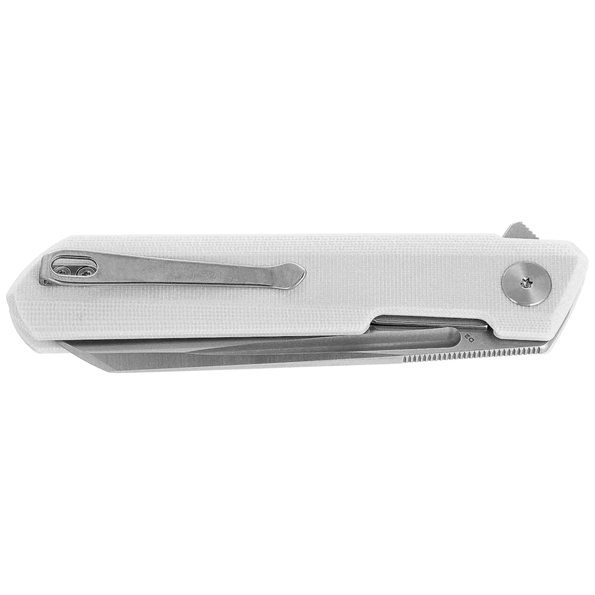 Dundee Sheepfoot White G10, Grey PVD/Satin kompaktowy nóż składany E.D.C. Efekt współpracy polskiego knifemakera, Ostapa Hela z firmą Bestechman. Wykonany z dobrych materiałów przy zachowaniu niezwykle atrakcyjnej ceny folder z klingą ze sprawdzonej stali D2. Bestseller!