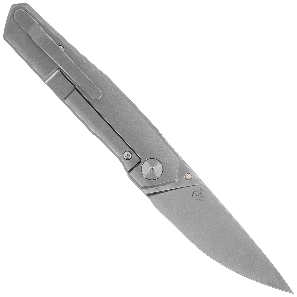 Rękojeść - z tytanu została poddana piaskowaniu, co zapewnia odpowiednią przyczepność i odporność powierzchni na zużycie. Prosty, ergonomiczny kształt dobrze układa się w dłoni, a fazowane krawędzie podnoszą komfort użytkowania. Zintegrowany klips deep carry umożliwia niskoprofilowe przenoszenie, a blokada frame lock gwarantuje stabilność ostrza podczas pracy. Konstrukcja jest sztywna, trwała i pozbawiona zbędnych detali, co czyni ją idealnym wyborem dla miłośników surowego, technicznego designu.