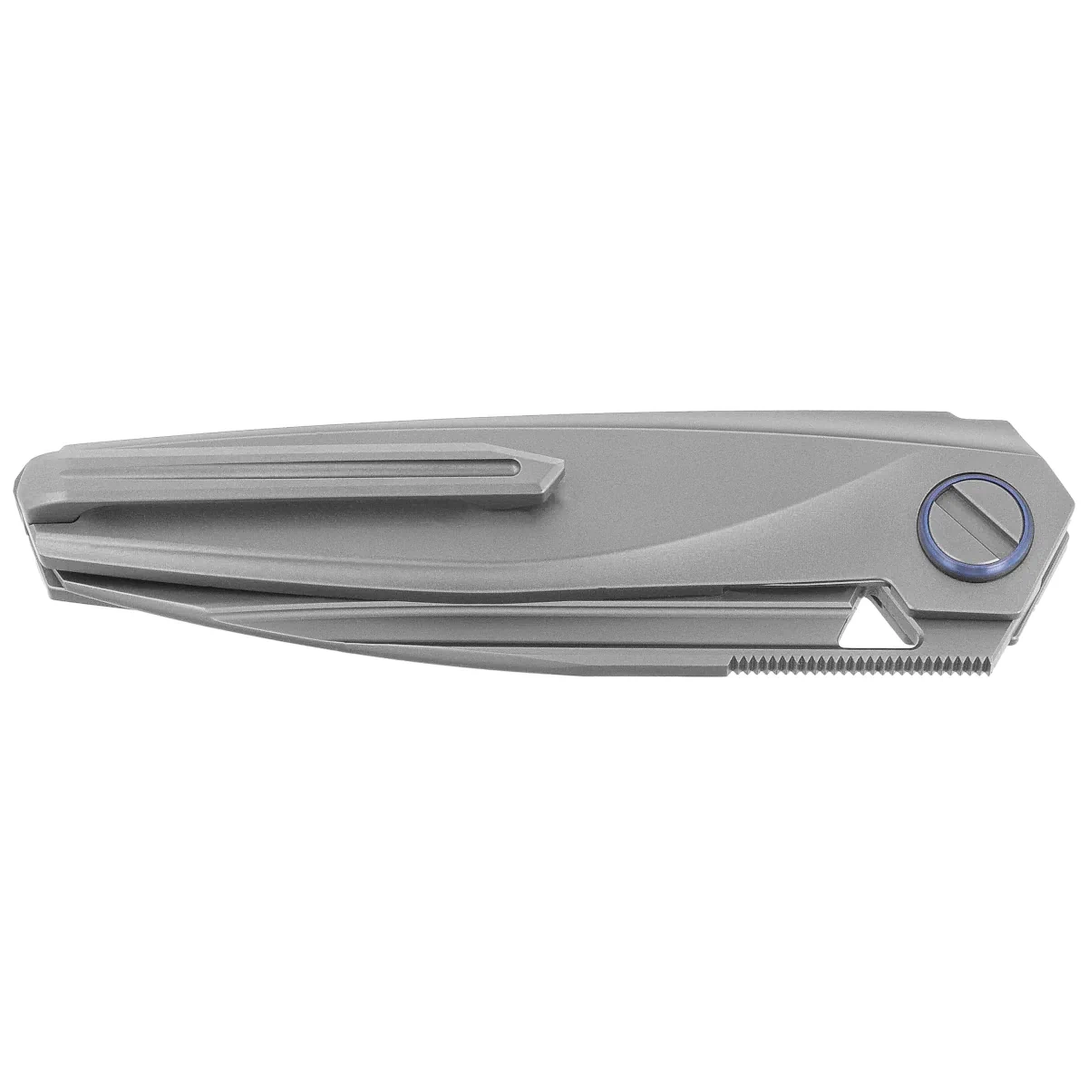 Rękojeść - frezowany szkielet z tytanu 6AL4V, bezśrubowa konstrukcja zwalniana mechanizmem zatrzaskowym. Po stronie prezentacyjnej wkładka z kompozytu Green Carbon Fiber – materiału docenianego za niską wagę i wysoką odporność mechaniczną. Smukły kształt, wyraźne profilowanie oraz staranne fazowanie krawędzi zapewniają wygodę chwytu niezależnie od warunków pracy. Rękojeść została zaprojektowana z myślą o optymalnym balansie, a klips typu deep carry pozwala na niskoprofilowe przenoszenie. Staranność wykonania oraz dobór materiałów czynią z modelu Baidi T propozycję dla koneserów nowoczesnych noży składanych o wysokiej kulturze użytkowej.
