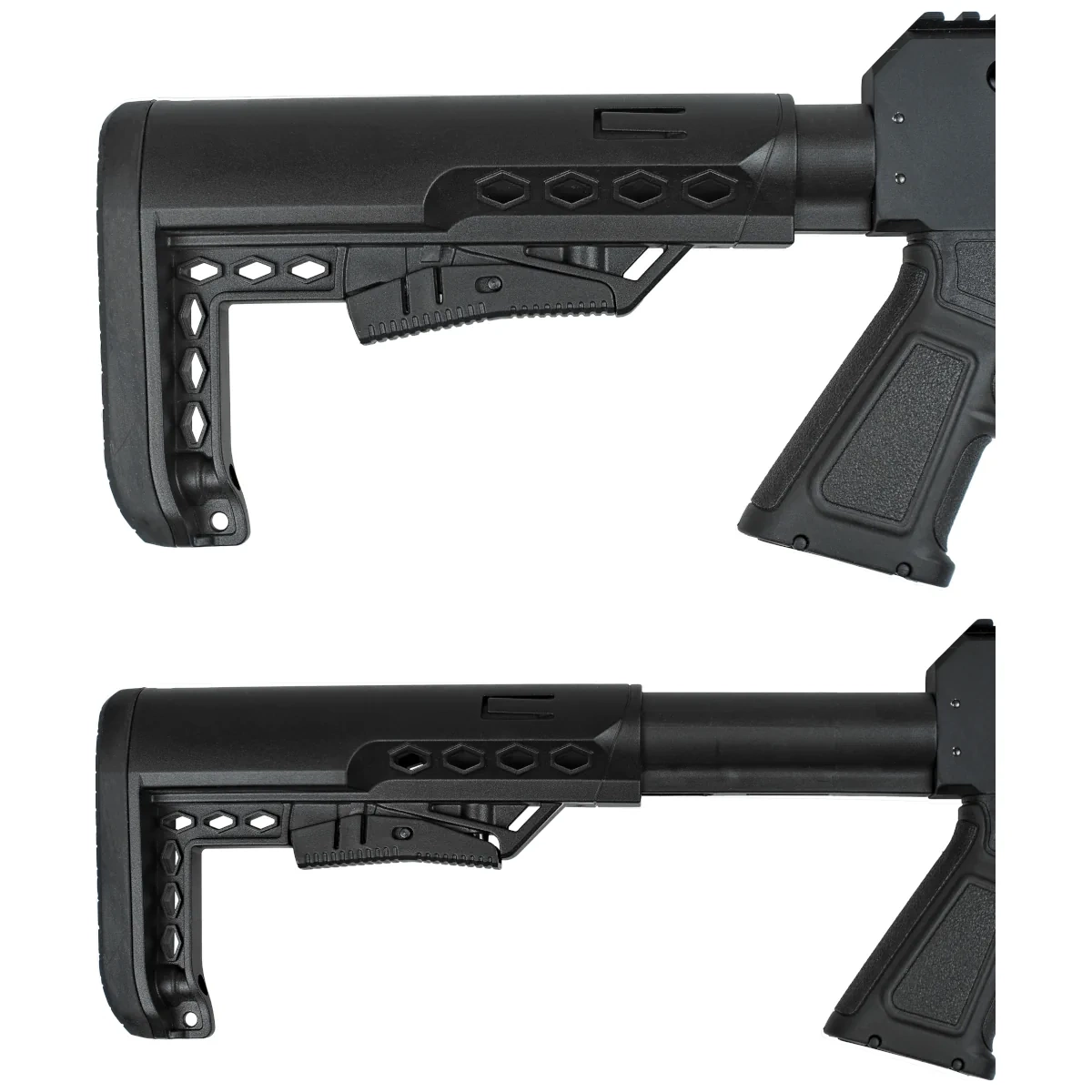 Osada - taktyczna z chwytem pistoletowym i teleskopową kolbą w systemie AR-15, ułatwia złożenie się do strzału oraz celowanie. Zakończona gumową stopką. Gumowany chwyt pistoletowy gwarantuje pewny chwyt wiatrówki. Niewielka waga 1,8 kg zapewnia komfort użytkowania.