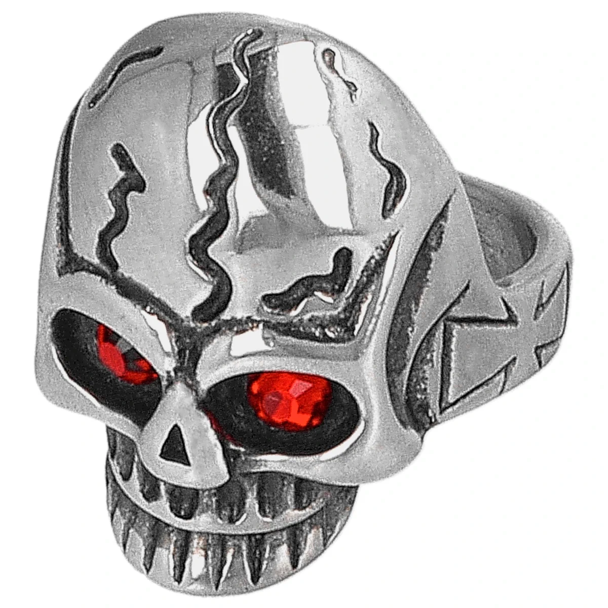 • Pierścień Tole 10 Imperial Skull Ø20 – masywny sygnet z czaszką i czerwonymi kryształami w oczodołach. Mroczna estetyka, metaliczny połysk i wyrazista forma dla indywidualistów.