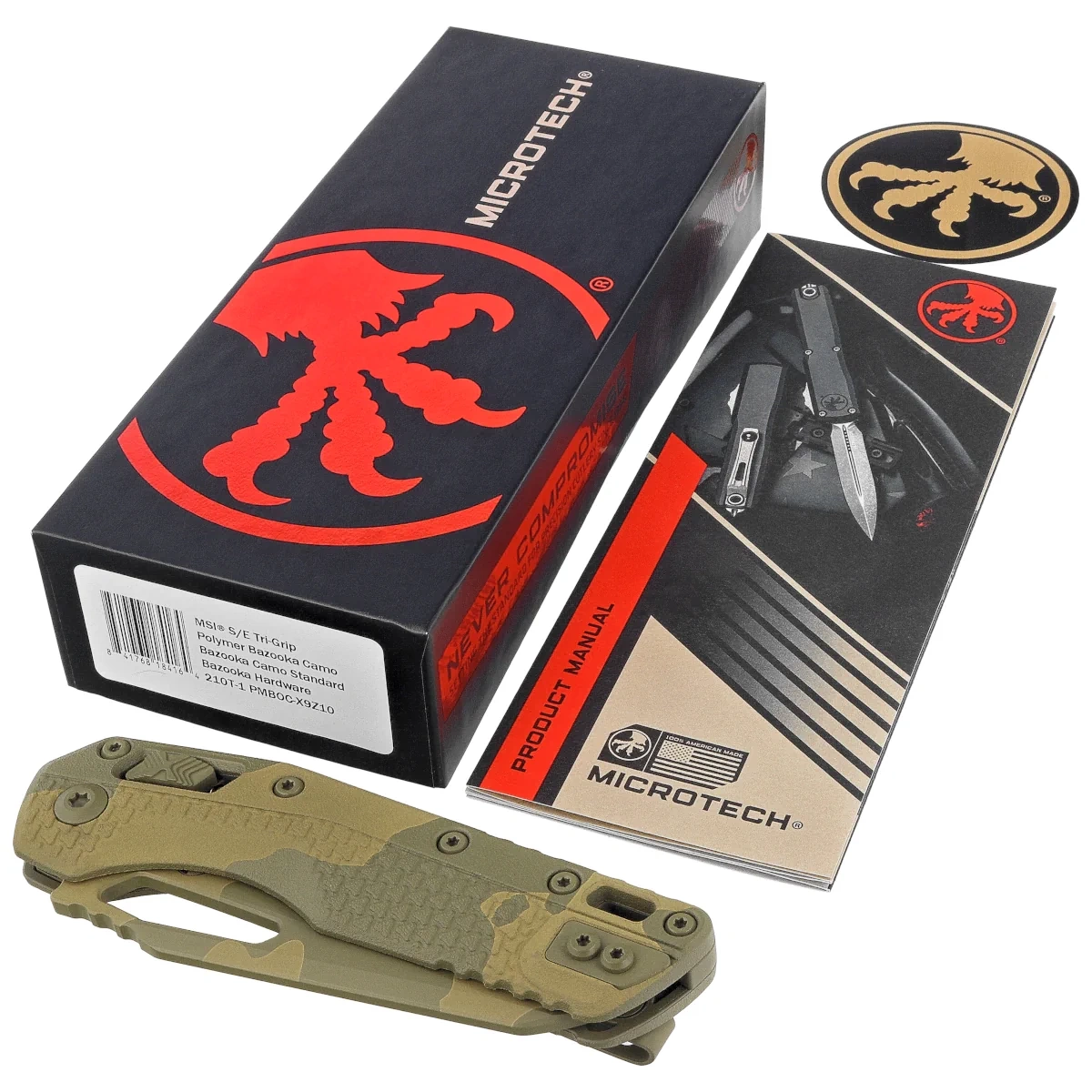 - MSI S/E Ram-Lok Bazooka Camo Tri-Grip Polymer, Bazooka Camo mocny nóż składany z intuicyjną blokadą RAM-Lok. Doskonała stal ostrza M390MK, efekt współpracy inżynierów z Microtech i Bohler. Ergonomiczna rękojeść z polimeru. Projekt Tony Marfione