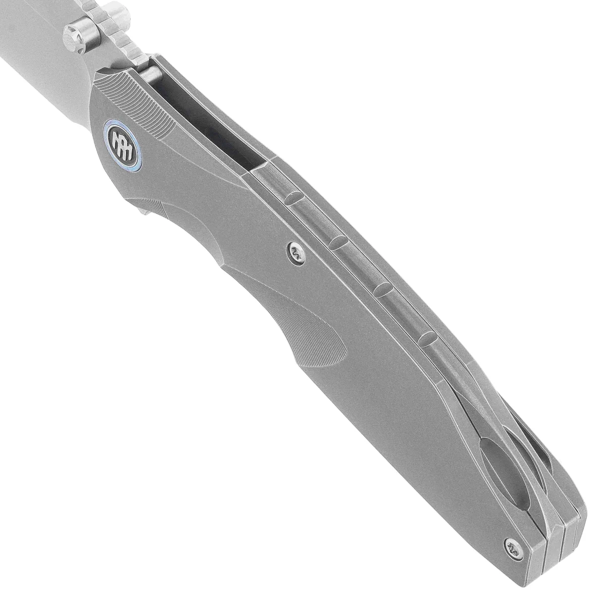 Rękojeść - konstrukcja wykonana w całości z tytanu gwarantuje trwałość, sztywność i odporność na warunki zewnętrzne. Zastosowane frezowanie poprawia ergonomię chwytu, jednocześnie nadając powierzchni wyrazistą, technologiczną fakturę. Blokada typu frame lock, wyposażona w dodatkowe wzmocnienie, działa pewnie i bezpiecznie, zapewniając użytkownikowi stabilność podczas pracy. Klips typu deep carry umożliwia niskoprofilowe przenoszenie noża, co czyni go równie praktycznym, jak eleganckim. Projekt łączy funkcjonalność codziennego narzędzia z estetyką obiektów kolekcjonerskich, nie rezygnując z żadnego aspektu użytkowego.
