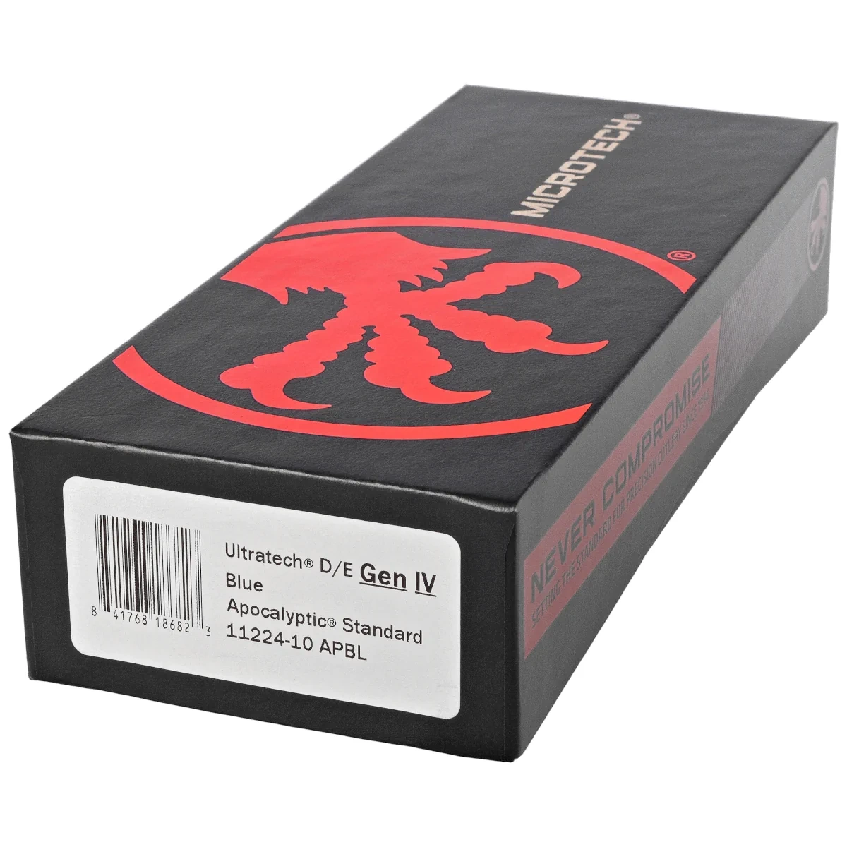 Ultratech Gen IV D/E Blue Aluminium, Apocalyptic to pełnowymiarowy nóż automatyczny OTF (Out The Front) z serii Ultratech. Czwarta generacja modelu Ultratech wprowadza szereg udoskonaleń, takich jak; Crud Kutter™ oraz Dual-Fuel Drive Train™. Przeprojektowano również rękojeść, wzbogacając ją o rozwiązania znane z innych modeli marki Microtech. Pracujący w trybie D/A (Double Action), umożliwia błyskawiczne wysunięcie i schowanie ostrza za pomocą jednego ruchu kciuka. Projekt autorstwa Tony’ego Marfione, właściciela Microtech Knives, łączy nowoczesny design z najwyższą jakością wykonania i niezawodnością charakterystyczną dla tej legendarnej marki.