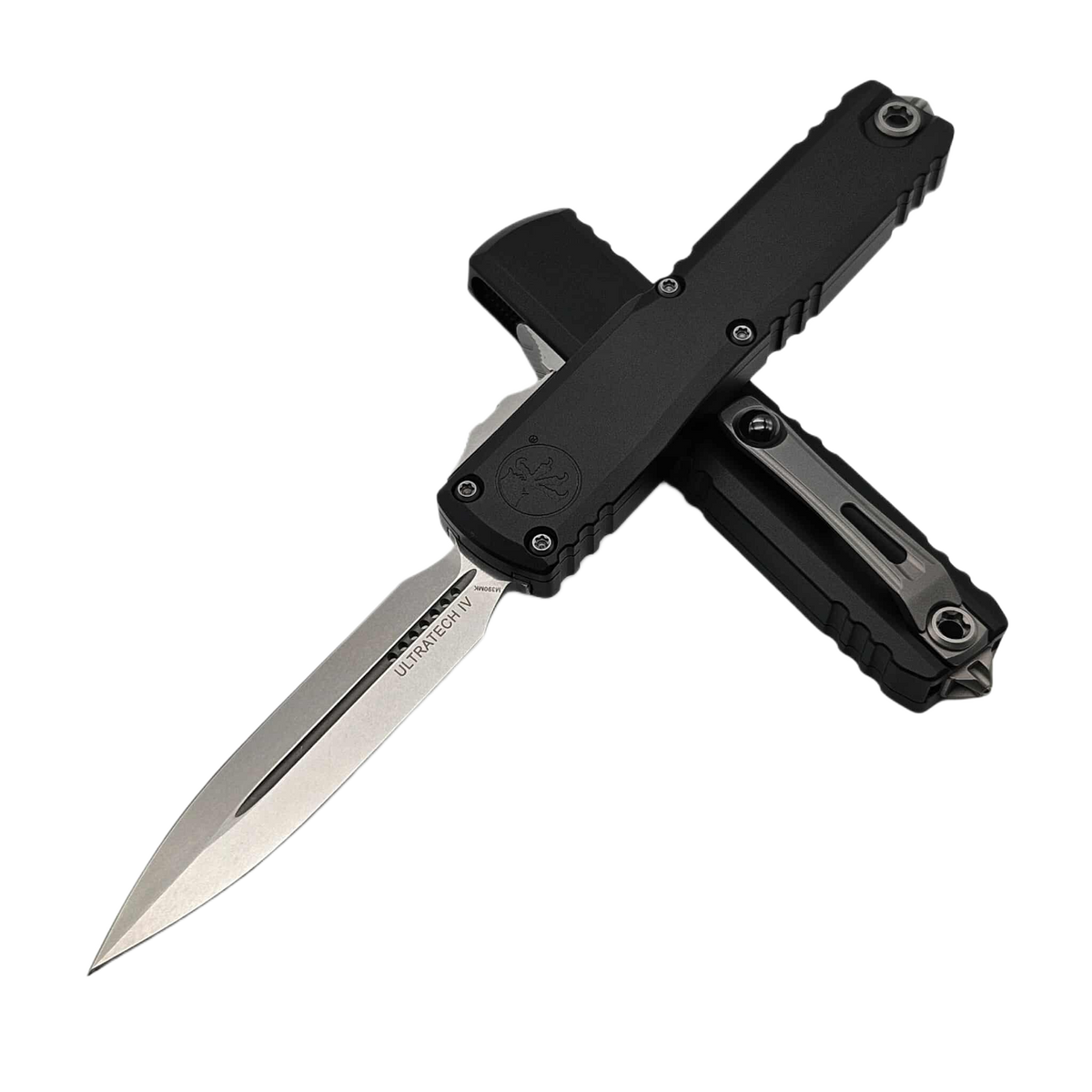 Ultratech Gen IV D/E Black Aluminium, Stonewashed to pełnowymiarowy nóż automatyczny OTF (Out The Front) z serii Ultratech. Czwarta generacja wyróżnia się szeregiem usprawnień, takich jak; Crud Kutter™, Dual-Fuel Drive Train™. Przeprojektowano również rękojeść, wyposażając ją w rozwiązania znane z innych modeli. Pracujący w trybie D/A (Double Action), umożliwia błyskawiczne wysunięcie i schowanie ostrza za pomocą jednego ruchu kciuka. Projekt autorstwa Tony’ego Marfione, właściciela Microtech Knives, łączy w sobie nowoczesny design z najwyższą jakością wykonania.