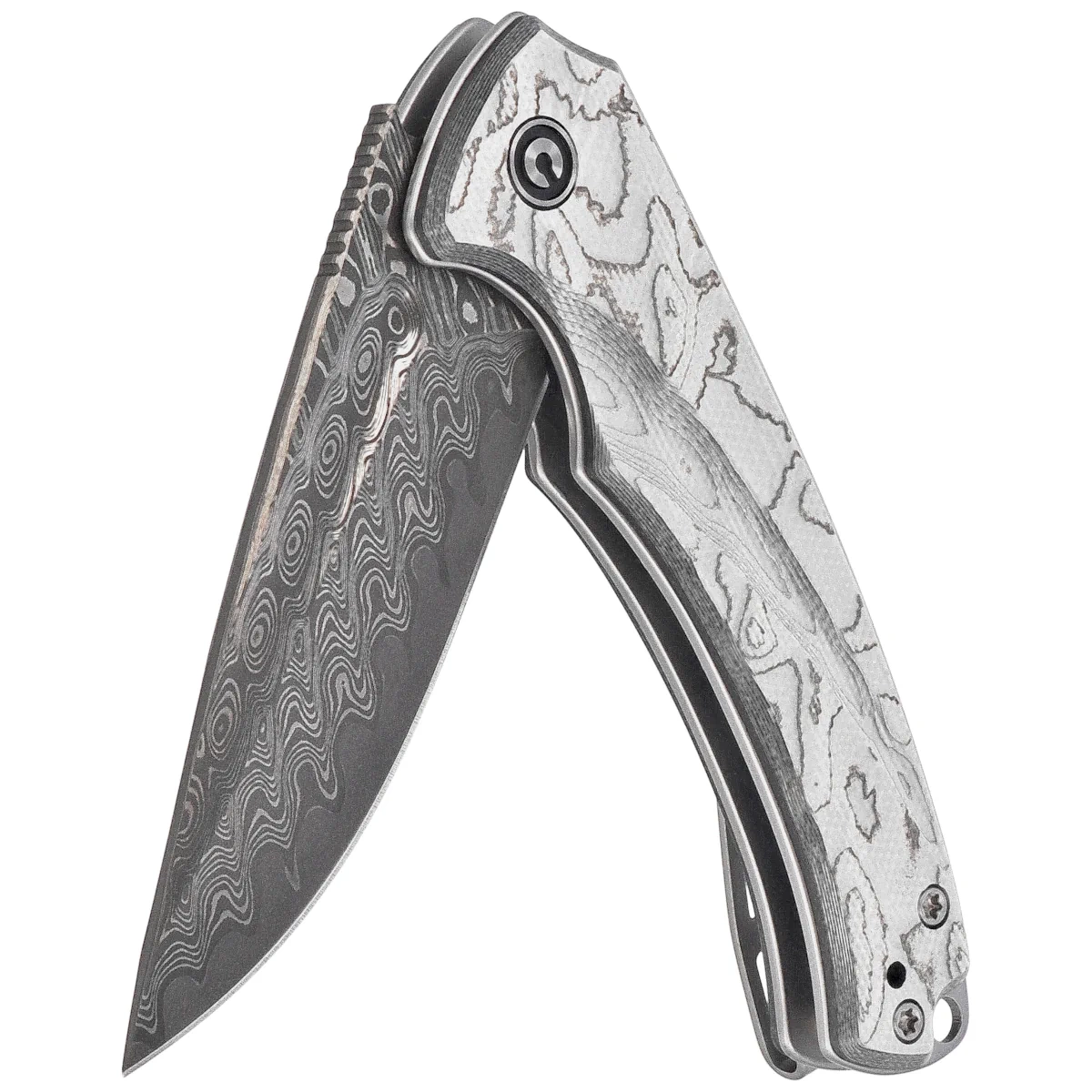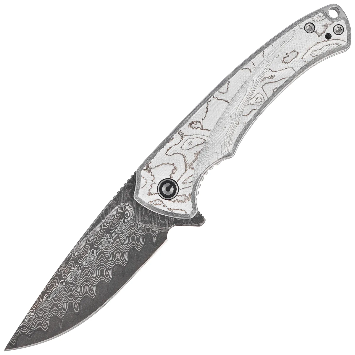 - Voidflare G10 w/ Aluminium Foil, Damascus – elegancki nóż składany EDC z ostrą i wytrzymałą głownią z damastu, osadzony na lekkiej i teksturowanej rękojeści z kompozytu G10. Srebrne detale i dynamiczna linia podkreślają nowoczesny styl.