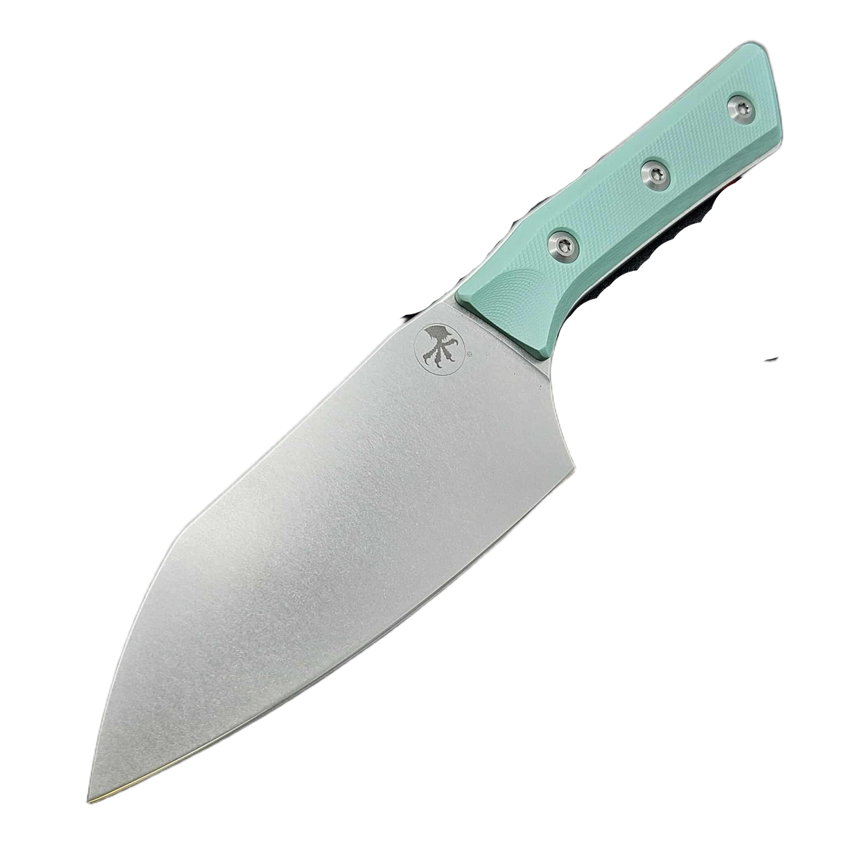 Rękojeść - z kompozytu G10 to połączenie wytrzymałości, lekkości i ergonomii, dopasowanej do potrzeb intensywnej pracy w kuchni. Jej prosty, funkcjonalny kształt oraz subtelna tekstura powierzchni zapewniają pewny chwyt w każdej sytuacji – także przy wilgotnych dłoniach lub w warunkach wysokiej wilgotności. Mocowanie na trzech śrubach torx zwiększa sztywność konstrukcji i ułatwia dostęp do wnętrza w przypadku konieczności czyszczenia. Wyprofilowany grzbiet rękojeści pozwala na naturalne prowadzenie dłoni, minimalizując zmęczenie i zwiększając kontrolę nad ostrzem. Rękojeść łączy nowoczesny design z użytkową surowością, charakterystyczną dla projektów Microtech.
