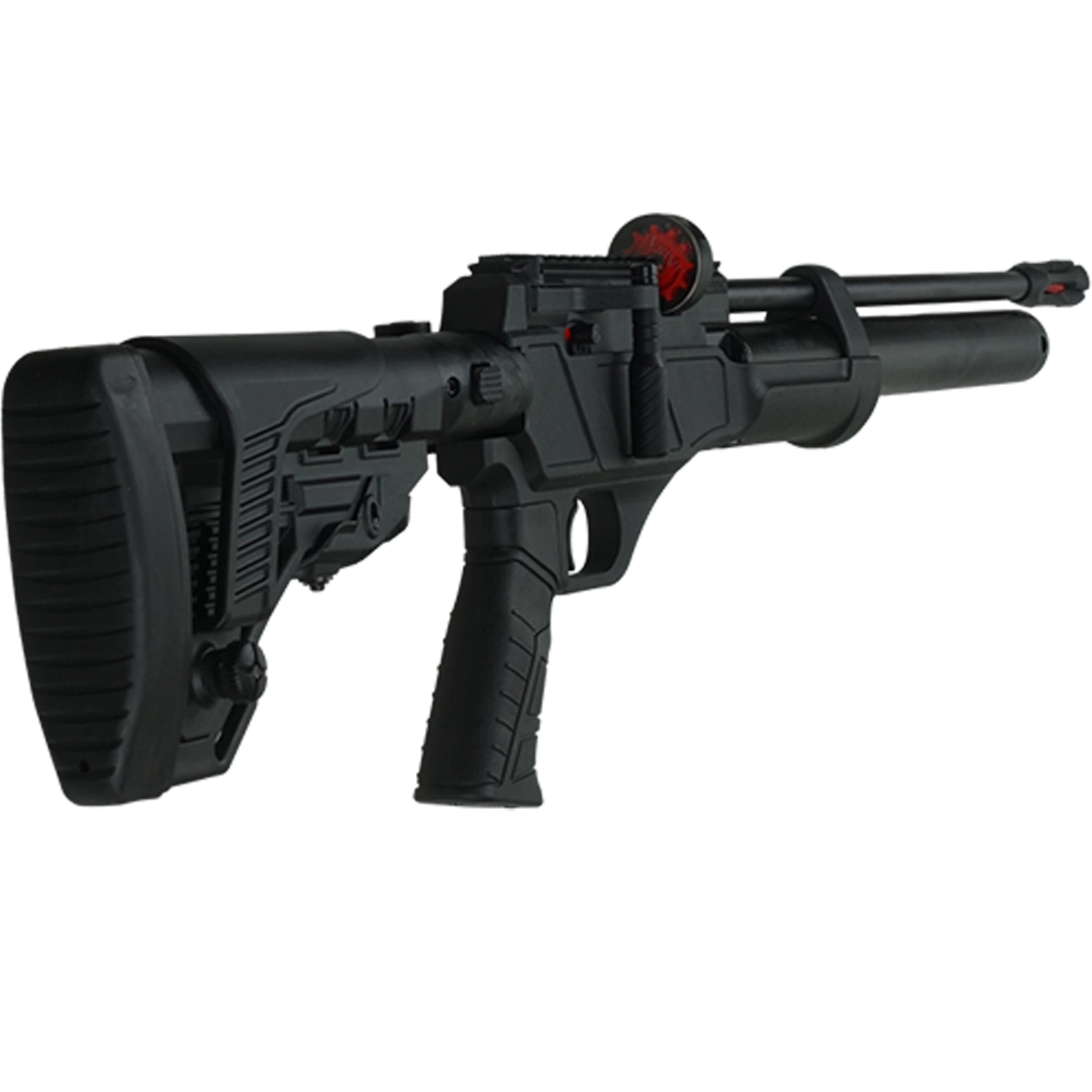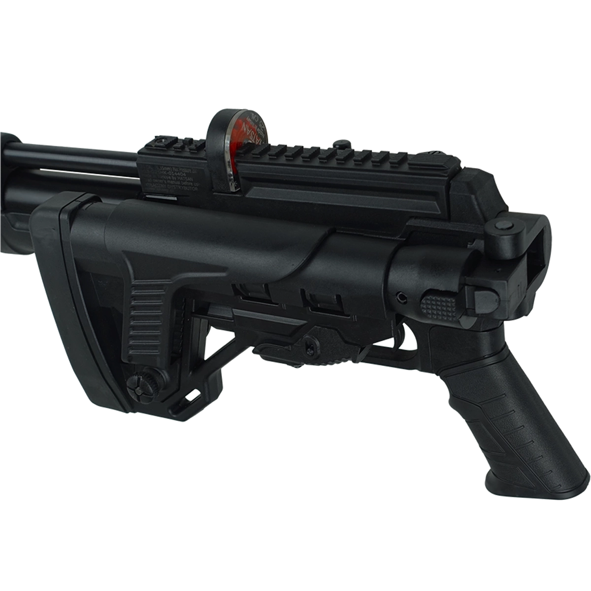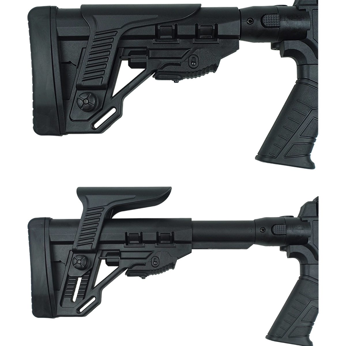 Osada - taktyczna, z gumowanym chwytem pistoletowym oraz w pełni regulowaną kolbą w systemie AR-15. Teleskopowa kolba posiada regulowaną w pionie bakę policzkową, gumowaną stopkę. Składana na bok kolba ułatwia przenoszenie. Korpus wiatrówki wykonany z wytrzymałego polimeru.