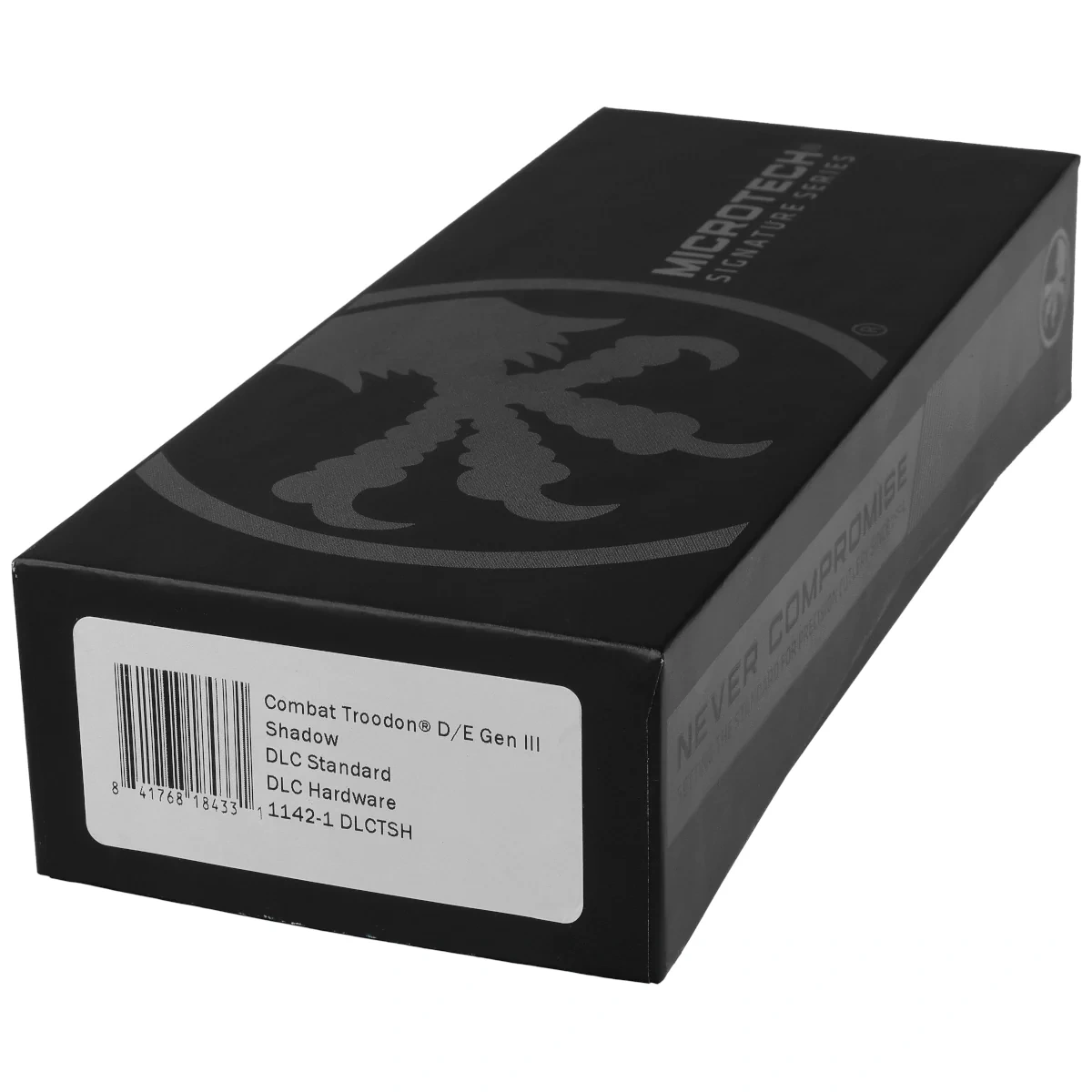 Combat Troodon Gen III D/E Shadow DLC Aluminium, Shadow DLC ten największy z noży automatycznych, to szczyt precyzyjnej inżynierii i taktycznej sprawności w dziedzinie noży OTF (Out The Front). Zbudowany z myślą o szerokim spektrum zastosowań użytkowych, może pochwalić się większym o 25% rozmiarem w porównaniu do flagowego Troodona. Precyzyjnie wykonany, wyposażony w wyrafinowany i piekielnie szybki mechanizm wysuwający ostre jak brzytwa ostrze. W 100% wyprodukowany i zmontowany w USA. Projekt Anthony'ego Marfione, knifemakera i właściciela Microtech Knives.