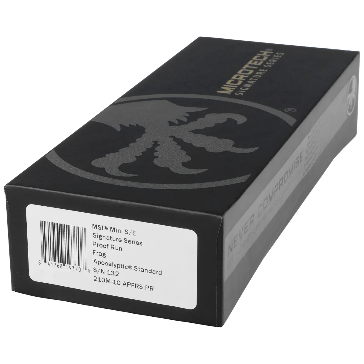 - MSI Mini S/E Signature Proof Run Frag Black Aluminium, Apocalyptic limitowana, kolekcjonerska wersia wczesnoprodukcyjna kompaktowej wersji modelu MSI. Doskonała stal ostrza M390MK, ergonomiczna rękojeść z aluminium. Projekt Anthony Marfione!