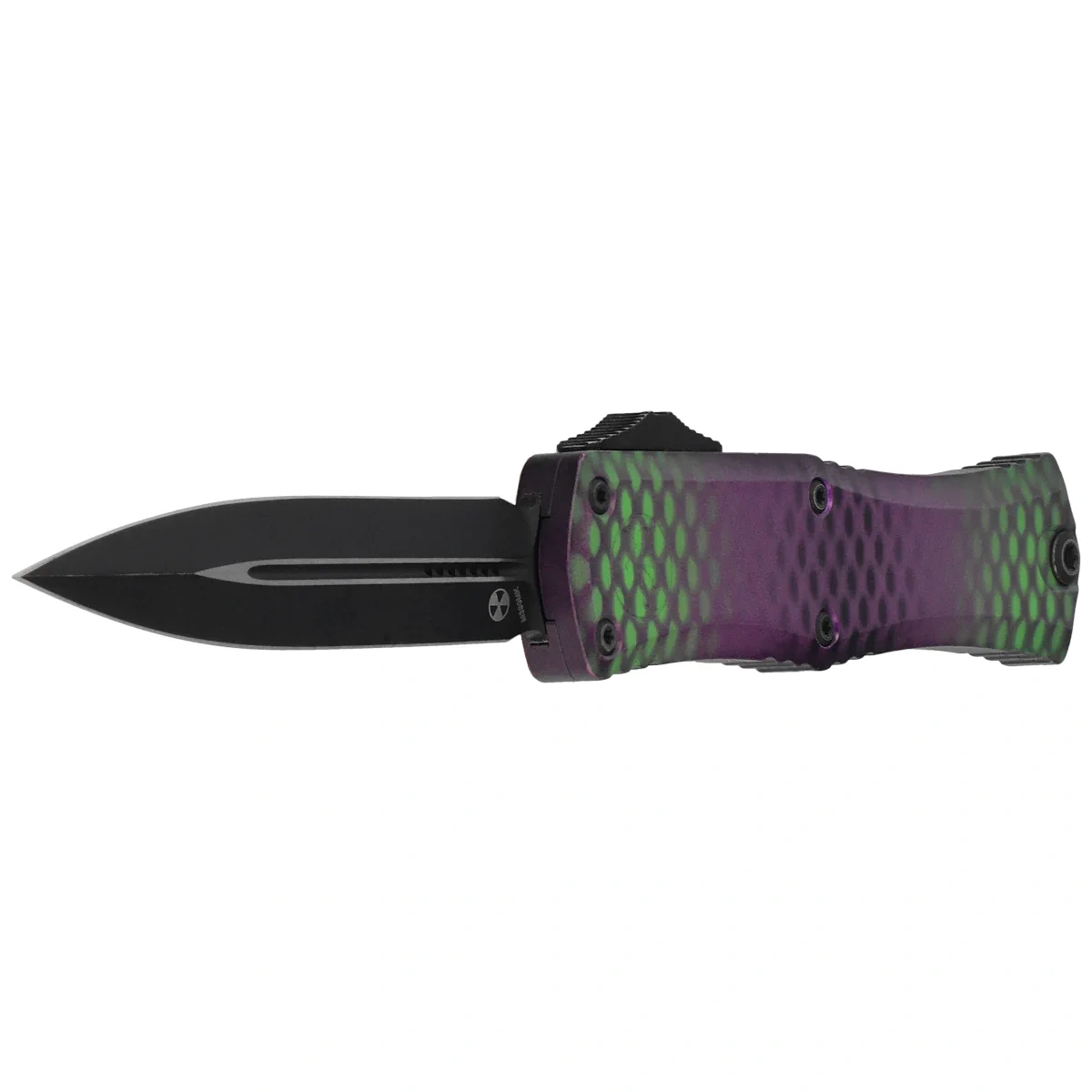 Nóż automatyczny OTF Microtech Hera II Mini D/E Alien Purple X-51 Aluminium, Black M390MK by Tony Marfione (1702M-1PUX51S)