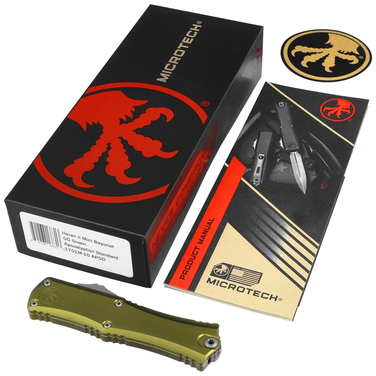 Nóż automatyczny OTF Microtech Hera II Mini Bayonet OD Green Aluminium, Apocalyptic M390MK by Tony and Sean Marfione (1701M-10APOD)