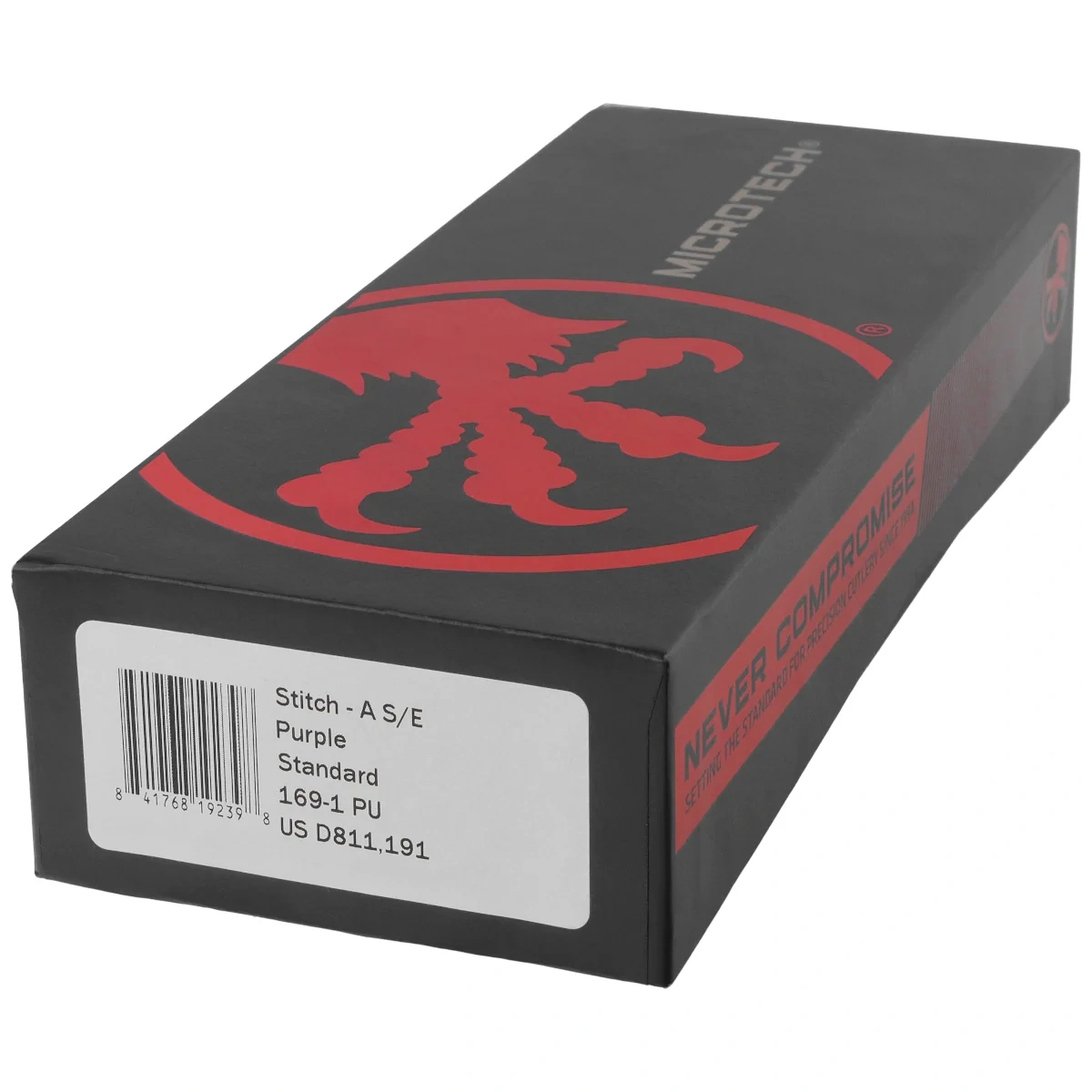 - Stitch-A S/E Purple Aluminum, Black automatyczna wersja popularnego projektu Sebastijana Berenjiego z Borka Blades i firmy Microtech. Szerokie ostrze w kształcie harpuna, doskonałe materiały i legendarna jakość wykonania firmy Microtech!