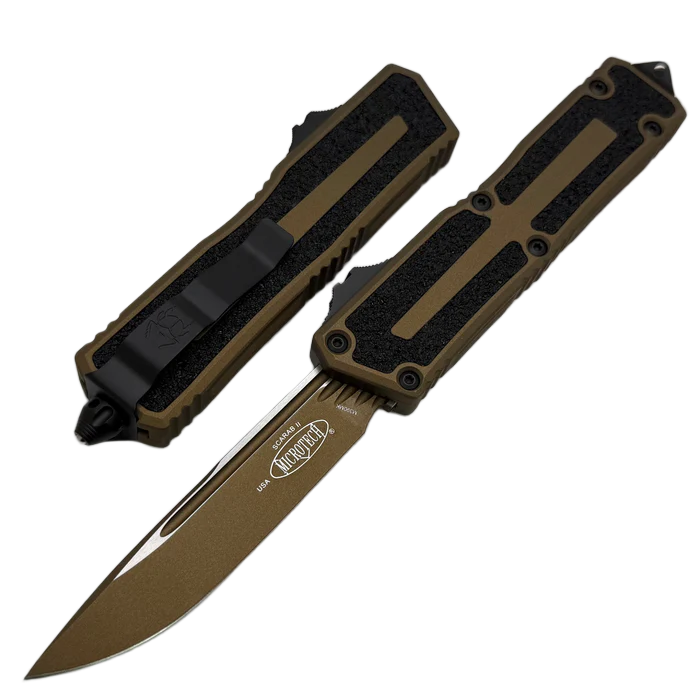 Nóż automatyczny OTF Microtech Scarab II Gen III S/E Cerakote Burnt Bronze Aluminium, Cerakote Burnt Bronze M390MK by Tony Marfione (1278-1UB-C19Z4)
